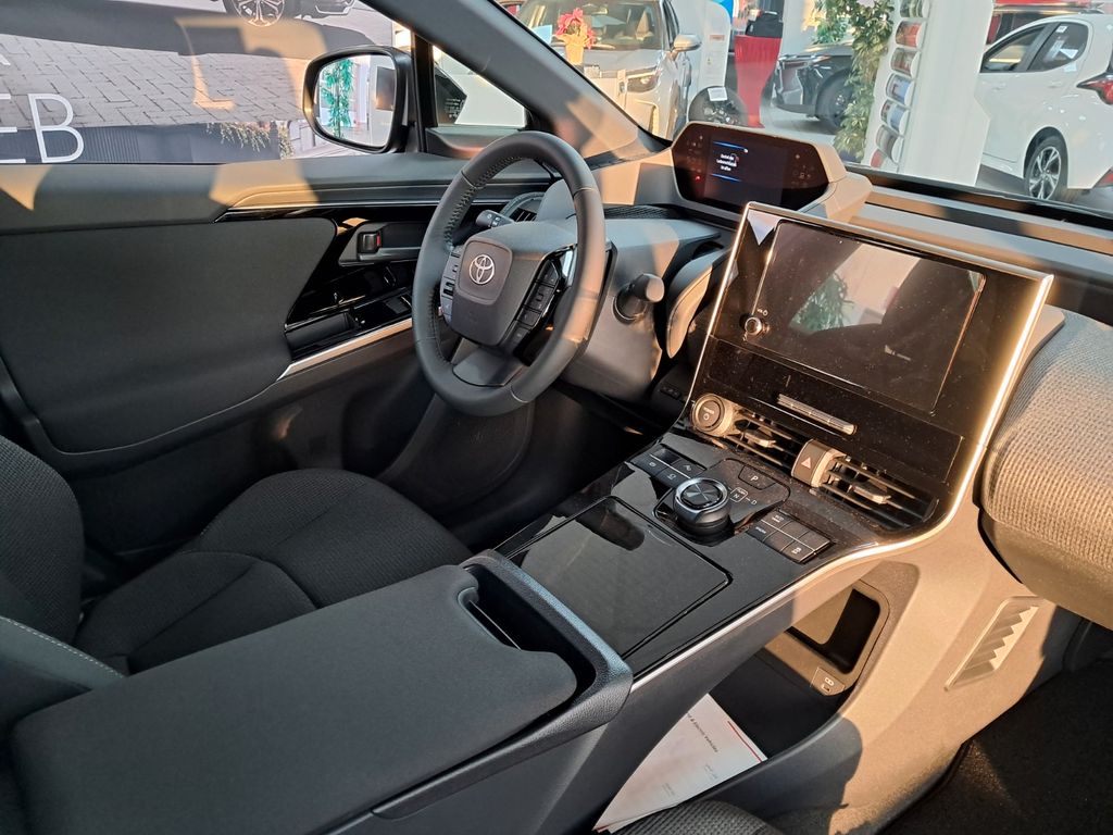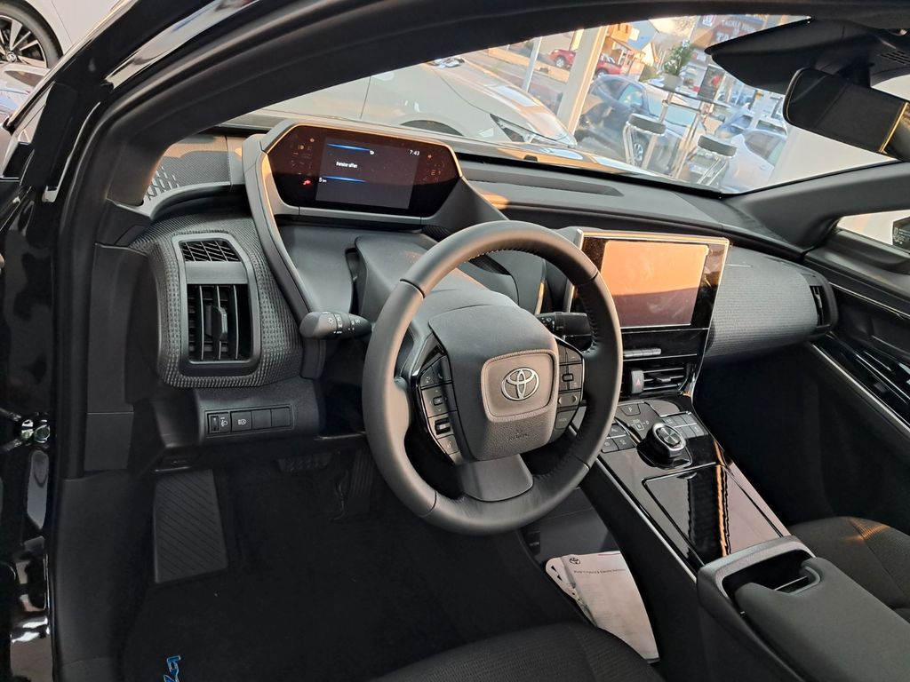 Entdecken Sie den Toyota bZ4X, ein vollelektrisches SUV mit beeindruckender Reichweite von 514 km. Dieses Fahrzeug vereint moderne Technologie mit Alltagstauglichkeit und bietet ein umfassendes Sicherheitspaket. Der Frontantrieb wird von einem 204 PS starken Elektromotor angetrieben, der für dynamische Fahrleistungen sorgt. Die Ladezeiten sind mit 30 Minuten für Schnellladung und 390 Minuten für Standardladung praxistauglich. Im Innenraum profitieren Sie von einer 2-Zonen-Klimaautomatik, Navigationssystem und einem Touchscreen mit Apple CarPlay sowie Android Auto. Die schwarze Metallic-Lackierung verleiht dem SUV einen eleganten Auftritt. Für Ihre Sicherheit sind zahlreiche Assistenzsysteme wie Kollisionsvermeidung, Spurhalteassistent und Verkehrszeichenerkennung an Bord.- Vollelektrischer SUV mit 514 km Reichweite und 204 PS