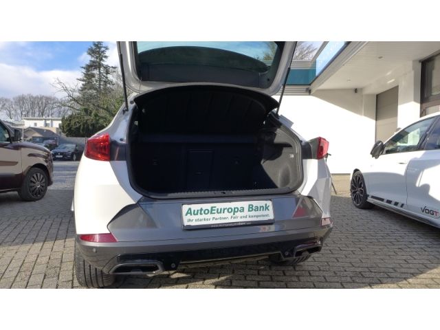 - Weiteres: Antriebs-Schlupfregelung (ASR), Sitzbezug / Polsterung: Stoff, Isofix-Aufnahmen für Kindersitz an Rücksitz, Reifen-Reparaturset, Rücksitzlehne geteilt/klappbar (1/3-2/3), Sportsitze vorn, Parkbremse elektrisch, Airbag Beifahrerseite abschaltbar, Lendenwirbelstütze Sitz vorn rechts, verstellbar, Leuchtweitenregelung automatisch, Notrufsystem, Getriebe 7-Gang - Doppelkupplungsgetriebe DSG, USB-Schnittstelle vorn (2-fach, Typ C), Fensterheber elektrisch vorn + hinten mit Komfortschaltung, Kombiinstrument digital (virtual cockpit), Nebelscheinwerfer LED mit Abbiegelicht, Schadstoffarm nach Abgasnorm Euro 6d, Lenkrad heizbar (Sport/Leder) mit Multifunktion und Schaltfunktion, Seitenscheiben hinten und Heckscheibe abgedunkelt, Außenspiegel elektr. verstell-, heiz- und anklappbar mit Spiegelabsenkung und Welcome Light, Lichtassistent (Coming Home, Leaving Home), Seitenairbag vorn mitte (Central Airbag), Scheinwerfer Voll-LED, Schließ-/Startsystem Kessy Advanced, Einparkhilfe hinten, Rückfahrkamera, LM-Felgen 8x19 (Exclusive I, schwarz / silber, glanzgedreht), Audio-Navigationssystem mit Touchscreen Farbbildschirm, Anti-Blockier-System (ABS), Gepäckraumabdeckung / Rollo, Reifenkontroll-Anzeige, Wegfahrsperre (elektronisch), Licht- und Regensensor, Airbag Fahrer-/Beifahrerseite, Mittelkonsole vorn mit Mittelarmlehne, Becherhalter, Ablagebox und Luftausströmer hinten, Dachreling schwarz, hochglänzend, Tagfahrlicht LED, USB-Ladeanschlüsse (2-fach, Typ C) für 2.Sitzreihe, Heckleuchten LED mit dynamischem Blinklicht, Kopf-Airbag-System, Seitenairbag, Heckleuchten Voll-LED mit dynamischem Lichtband (Infinite Light), Full Link (MirrorLink, Apple CarPlay und Android Auto), Antriebsart: Frontantrieb, Automatische Distanzregelung (ACC), Blinkleuchten LED in Außenspiegel integriert, Bluetooth-Schnittstelle mit Freisprecheinrichtung, Climatronic 3-Zonen, Einstiegsleisten (Aluminium) vorn, beleuchtet, Elektron. Differentialsperre (XDS), Elektron. Stabilitätskontrolle (ESC), Fahrassistenz-Paket L, Fahrprofilauswahl (CUPRA Drive Profile), Fernlichtassistent, Induktionsladeschale für Smartphone, Innenspiegel mit Abblendautomatik, Laderaumboden variabel, Lendenwirbelstütze, Licht- und Sicht-Paket, Mittelarmlehne hinten, Motor 1,5 Ltr. - 110 kW 16V TSI ACT, Müdigkeitserkennung, Parklenkassistent mit Einparkhilfe vorn und hinten, Radioempfang digital (DAB+), Servolenkung elektro-mechanisch, Sitzheizung vorn, Sitzhöhenverstellung, Sitzhöhenverstellung Fahrersitz, Sprachsteuerung, Spurhalteassistent, Start/Stop-Anlage, Totwinkel-Assistent mit Auspark-Assistent, Spurwechselassistent und Ausstiegswarnung, Umfeldbeobachtungssystem (Front assist) mit City-Notbremsfunktion, Uni-Lackierung, Verkehrszeichenerkennung, Wärmeschutzverglasung, Winter-Paket, ZV mit Fernbedienung
