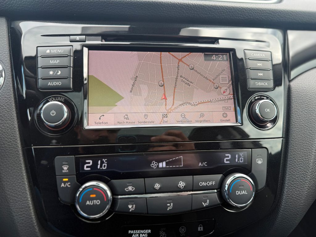 3. Bremsleuchte, 6 Lautsprecher, Airbag Beifahrerseite abschaltbar, Airbag Fahrer-/Beifahrerseite und Seitenairbag vorn, Ambiente-Beleuchtung, Audiobedienung am Lenkrad, Audiosystem: Radio mit CD- und MP3-Player, Ausstattungs-Paket: Nissan Connect, Auto-Hold-Funktion, Automatische Fahrlichtschaltung, AUX-IN-Anschluss (AUX-IN), Außenspiegel elektr. anklappbar, Außenspiegel elektr. verstell- und heizbar, Außenspiegel Wagenfarbe, Außentemperaturanzeige, Blinkleuchte in Außenspiegel integriert, Bluetooth-Schnittstelle, Bordcomputer, Bremsassistent (Nissan Brake-Assist), Coming-Home-Lichtfunktion (Friendly Lightning), Dachantenne im Haifischflossen-Design, Einparkhilfe hinten, Einparkhilfe vorn, Elektr. Bremskraftverteilung (EBD), Fahrassistenz-Paket, Fahrassistenz-System: Aktive Fahrkomfortregelung (Fahrwerksdämpfung), Fahrassistenz-System: Autonomer Notbrems-Assistent, Fahrassistenz-System: Fußgängererkennung, Fahrassistenz-System: Kurvenbremskontrolle (Aktive Spurkontrolle), Fahrer-Informations-System (FIS) mit Farbdisplay, Fensterheber elektrisch vorn + hinten, Fernentriegelung Tankklappe, Freisprechanlage Bluetooth, Frontscheibe Verbundglas, Gepäck-/Laderaum-Unterteilung (Flexi-Board), Gepäckraumabdeckung / Rollo, Getränkehalter in Mittelkonsole, Gurtstraffer, Handschuhfach beleuchtet, Heckscheibe heizbar, Innenraumfilter: Pollenfilter, Isofix-Aufnahmen für Kindersitz, Karosserie: 5-türig, Klimaautomatik 2-Zonen, Kopf-Airbag-System, Kopfstützen vorn und hinten verstellbar, Lendenwirbelstütze Sitz vorn links, Lenksäule (Lenkrad) höhen-/längsverstellbar, Leseleuchte vorn, LM-Felgen, Mittelarmlehne hinten, Modellpflege, Motor 1,3 Ltr. - 103 kW 16V KAT, Nebelschlussleuchte, Otto-Partikelfilter (OPF), Panorama-Glasdach, Parkbremse elektrisch, Radioempfang digital (DAB), Radstand 2646 mm, Reifendruck-Kontrollsystem, Rücksitz geteilt/klappbar, Schadstoffarm nach Abgasnorm Euro 6d, Schalt-/Wählhebelgriff Leder, Schaltpunktanzeige, Scheibenwischer mit Intervallschaltung, Sitz vorn links höhenverstellbar, Sitz vorn rechts höhenverstellbar, Sitzbezug / Polsterung: Stoff, Sitzheizung vorn, Sonnenblenden mit Spiegel, Sprachbediensystem Spracherkennung, Start-Stop-Knopf, Start/Stop-Anlage, Steckdose (12V-Anschluß) in Mittelkonsole, Türgriffe innen verchromt, USB-Schnittstelle, Verglasung hinten abgedunkelt, Wärmeschutzverglasung mit UV-Schutz