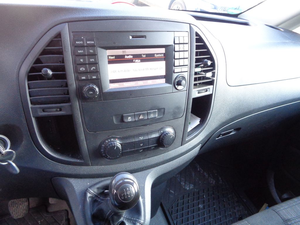 3-Tasten-Fernbedienung für Zentralverriegelung, 3. Bremsleuchte, Adaptives Bremslicht, Airbag Beifahrerseite, Airbag Fahrerseite, Anfahrhilfe (Berganfahr-Assistent), Außenspiegel asphärisch, beide, Außentemperaturanzeige, Befestigungsschienen für Dachträger, Bremsassistent, Bremssystem mit ABS+ASR, Fahrassistenz-System: Attention-Assist (Müdigkeitserkennungs-Sensor), Fahrassistenz-System: Pannenmanagement, Fahrassistenz-System: Seitenwind-Assistent, Frontscheibe mit Scheibenantenne, Generator 150 A, Getränkehalter hinten, Getränkehalter vorn, Gurtstraffer, Haltegriff Beifahrerseite, Handschuhfach abschließbar, Karosserie/Aufbau: extra lang, Karosserie/Aufbau: Kasten Standard, Kommunikationsmodul (LTE) für digitale Dienste, Laderaumtrennwand durchgehend, Lastenverankerung / Verzurrösen, Mercedes-Benz Notrufsystem, Motor 2,1 Ltr. - 100 kW CDI KAT, Nebelschlussleuchte, Radstand 3430 mm, Schadstoffarm nach Abgasnorm Euro 6, Schiebetür Lade-/Fahrgastraum rechts, Sicherheitsgurt-System mit Warnanlage (Fahrer-/Beifahrerseite), Sitzbezug / Polsterung: Stoff, Stahlfelgen 6,5x16, Verkleidung Fenstersäulen, Verkleidung im Lade-/FG-Raum: Hartfaser halbhoch, Verzurrschienen im Laderaum - Seitenwand an Dachrahmen, Wartungsintervall-Anzeige Assyst