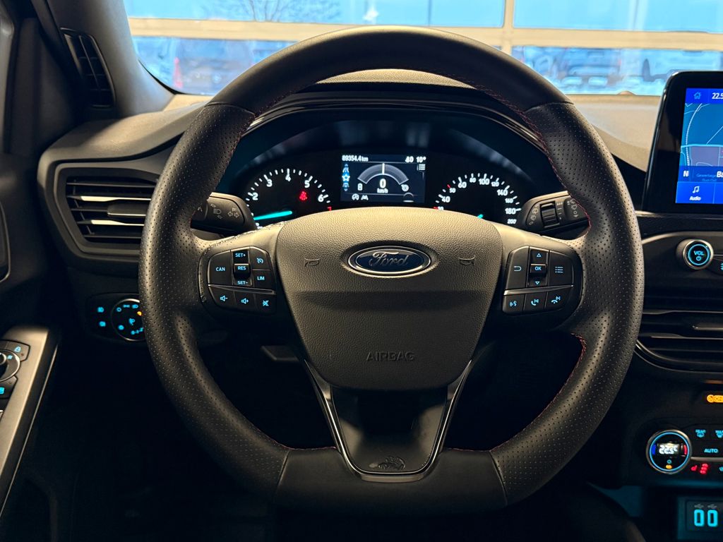 Airbag Beifahrerseite abschaltbar, Antischlupfregelung (ASR), Audio-Navigationssystem Ford mit AppLink, Außenspiegel elektr. anklappbar, Außenspiegel elektr. verstell- und heizbar, Blinkleuchte in Außenspiegel integriert, Body-Styling-Paket, Bord-/Verbrauchscomputer, Dachhimmel Stoff, dunkel, Dachreling schwarz, Dachspoiler Wagenfarbe, Dimmer Instrumentenbeleuchtung, Doppelendrohr Auspuffanlage, Elektr. Bremskraftverteilung (EBD), Fahrassistenz-System: Berganfahr-Assistent (Hill-Holder), Fahrassistenz-System: Notbrems-Assistent, Fahrassistenz-System: Post-Collision-System, Fahrassistenz-System: Pre-Collision-System, Fahrassistenz-System: Spurhalteassistent, Farbdisplay für Bordcomputer, Fensterheber elektrisch vorn + hinten mit Komfortschließung, FordPass Connect inkl. eCall, Fußmatten Velours - vorn, Gepäckraumabdeckung / Rollo, Getriebe 6-Gang - Typ: 6MX65, Innenraumfilter: Staub- und Pollenfilter, Intelligent Protection System (IPS), Intelligenter Geschwindigkeits-Begrenzer, Isofix-Aufnahmen für Kindersitz, Karosserie: 5-türig, Komfort-Paket, Kopfstützen hinten mechan. verstellbar (3 Stück), Kopfstützen vorn 4-fach verstellbar, Laderaumboden verstellbar, Lenkrad (Sport/Leder, ST), Lenksäule (Lenkrad) höhen-/längsverstellbar, LM-Felgen, Mild-Hybrid 92 kW (Motor 1,0 Ltr. - 92 kW EcoBoost), Mittelkonsole Premium, My Key (2. Fahrzeugschlüssel programmierbar), Nebelscheinwerfer LED, Nebelscheinwerfer mit statischem Abbiegelicht, Parkbremse elektrisch mit Auto-Hold-Funktion, Parkpilotsystem vorn und hinten, Pedale Aluminium, Reifendruck-Kontrollsystem, Reserverad als Notrad, Rücksitzlehne geteilt/klappbar (60:40), Schadstoffarm nach Abgasnorm Euro 6d, Schalt-/Wählhebelgriff Aluminium, Schaltpunktanzeige, Scheinwerfer mit abgedunkelten Hintergrund, Scheinwerfer-Assistent mit Tag-/Nachtsensor, Sicht-Paket, Sitz vorn links höhenverstellbar, Sonnenblende links mit Spiegel, Sonnenblende rechts mit Spiegel, Sport-Fahrwerk, Sportsitze vorn, Start/Stop-Anlage, Steckdose (12V-Anschluß) im Koffer-/Laderaum, Verglasung getönt, Warnanlage für Sicherheitsgurte hinten, Warnanlage für Sicherheitsgurte vorn
