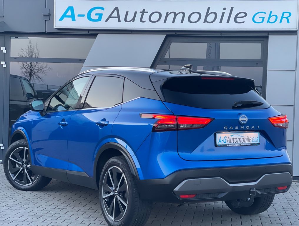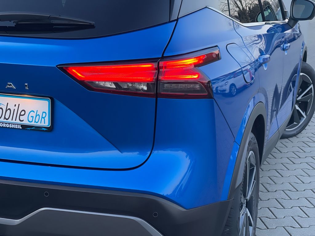 Dieser gepflegte Nissan Qashqai aus 2022 vereint Komfort, Technologie und Sicherheit in einem attraktiven SUV-Paket. Der Vierzylinder-Benziner mit 158 PS und Frontantrieb bietet dank Automatikgetriebe ein entspanntes Fahrerlebnis. Die blaue Metallic-Lackierung harmoniert perfekt mit dem teilweise in Leder ausgeführten schwarzen Innenraum. Mit nur zwei Vorbesitzern und lückenloser Servicehistorie präsentiert sich dieses Fahrzeug in einem vertrauenswürdigen Zustand.Die umfangreiche Ausstattung umfasst ein Panorama-Glasdach, elektrische Heckklappe und 2-Zonen-Klimaautomatik. Das digitale Cockpit mit Touchscreen, Navigationssystem und Head-up-Display sorgt für moderne Konnektivität, unterstützt durch Apple CarPlay, Android Auto und kabelloses Laden. Besonders beeindruckend sind die Fahrassistenzsysteme: 360-Grad-Kamera, adaptiver Tempomat, Spurhalteassistent erhöhen Sicherheit und Komfort.