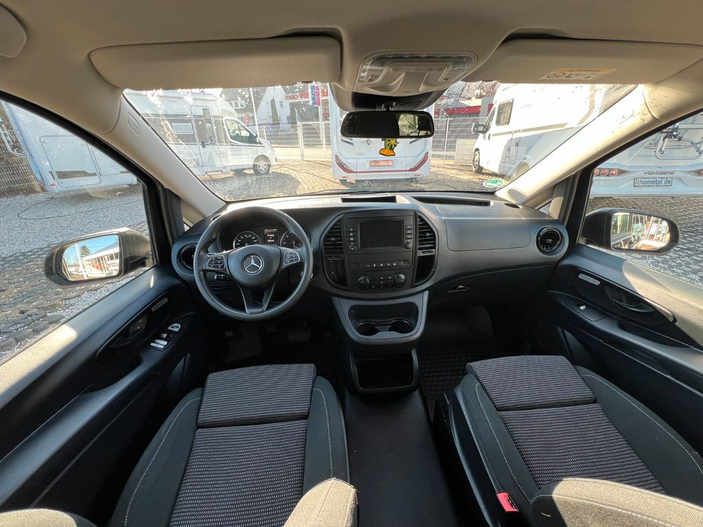 3. Bremsleuchte, Adaptives Bremslicht, Airbag Beifahrerseite, Airbag Fahrerseite, Anfahrhilfe (Berganfahr-Assistent), Antriebsart: Allradantrieb, Anzeige für Waschwasserstand, Auflastung auf 3,1 t, Außenspiegel asphärisch, beide, Außenspiegel elektr. verstell- und heizbar, beide, Außentemperaturanzeige, Befestigungsschienen für Dachträger, BlueEfficiency-Paket, Bodenbelag: Fahrgastraum TPO, Bremsassistent, Bremssystem mit ABS+ASR, Dachverkleidung, Design- und Ausstattungslinie PRO, Einschaltautomatik für Fahrlicht, Einstiegsgriff hinten, Fahrassistenz-System: Anfahr-Assistent (Berganfahr-Assistent), Fahrassistenz-System: Attention-Assist (Müdigkeitserkennungs-Sensor), Fahrassistenz-System: Pannenmanagement, Fahrassistenz-System: Seitenwind-Assistent, Fenster für hintere Türen / Heckklappe mit Wisch-/Waschanlage, Fenster im Lade-/FG-Raum: - feststehend, vorn rechts, Frontscheibe mit Scheibenantenne, Geschwindigkeits-Begrenzeranlage 210 km/h, Getriebe Automatik GTronic - (9-Stufen), Getränkehalter vorn, Gurtstraffer, Haltegriffe A-Säulen, Haltegriffe im Fond, Handschuhfach abschließbar, Harnstofftank (AdBlue): 24 Ltr., Heckklappe mit Verglasung, Heckscheibe heizbar, Heckscheibenwischer, Innenverkleidung gehobene Ausführung, Karosserie/Aufbau: Kombi Standard, Karosserie/Aufbau: lang, Kindersicherung, Kombiinstrument mit Pixel-Matrix-Display, Kommunikationsmodul (LTE) für digitale Dienste, Kopf-Airbag-System (Windowbag), Kopf-Schulter-Airbag (Thoraxbag) Fahrer-/Beifahrerseite, Kraftstofftank mit Falschbetankungsschutz, Lenkrad (Lenksäule mech. verstellbar), Lenkrad mit Multifunktion inkl. Reiserechner, Mercedes-Benz Notrufsystem, Modellpflege, Motor 2,0 Ltr. - 120 kW CDI KAT, Nebelschlussleuchte, PKW-Zulassung, Pro, PTC Heater, Radstand 3200 mm, Reifendruck-Kontrollsystem, Rückspiegel innen, Schadstoffarm nach Abgasnorm Euro 6d, Scheibenwischer mit Regensensor, Schiebetür Lade-/Fahrgastraum rechts mit Verglasung, SCR-System (AdBlue-Technologie), Sicherheitsgurt-System mit Warnanlage (Fahrer-/Beifahrerseite), Sitzbezug / Polsterung: Stoff Caluma, Sitze im Lade-/FG-Raum: 1.Reihe, 3er-Sitzbank, Klappsitz außen, Stahlfelgen 6,5x17, Umfeldleuchte in Heckklappe, Vlies-Batterie 92 Ah, Vorbereitung für DAB Radioempfang, Warmluftkanal zum Lade-/Fahrgastraum, Wartungsintervall-Anzeige Assyst, Wärmeschutzverglasung