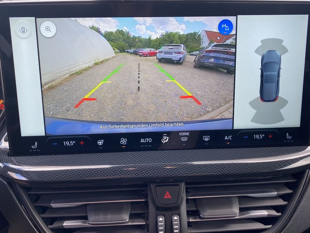 Rückfahrkamera; Scheibenwischer mit Regensensor; Geschwindigkeitsregelanlage (GRA) Tempomat; Fahrerassistenz-Paket 3: Pre-Collision-Assist inkl. Auffahrwarnsystem mit Fußgänger- und Fahrraderkennung zusätzlich mit Gegenverkehr-Erkennungssystem, intelligente adaptive Geschwindigkeitsregelanlage, Müdigkeitswarner, Fahrspur-Assistent inkl. Fahrspurhalte-Assistent, Park-Pilot-System vorn und hinten, Toter-Winkel-Assistent mit Cross Traffic Allert