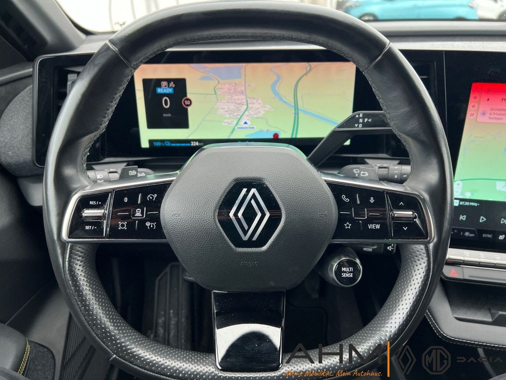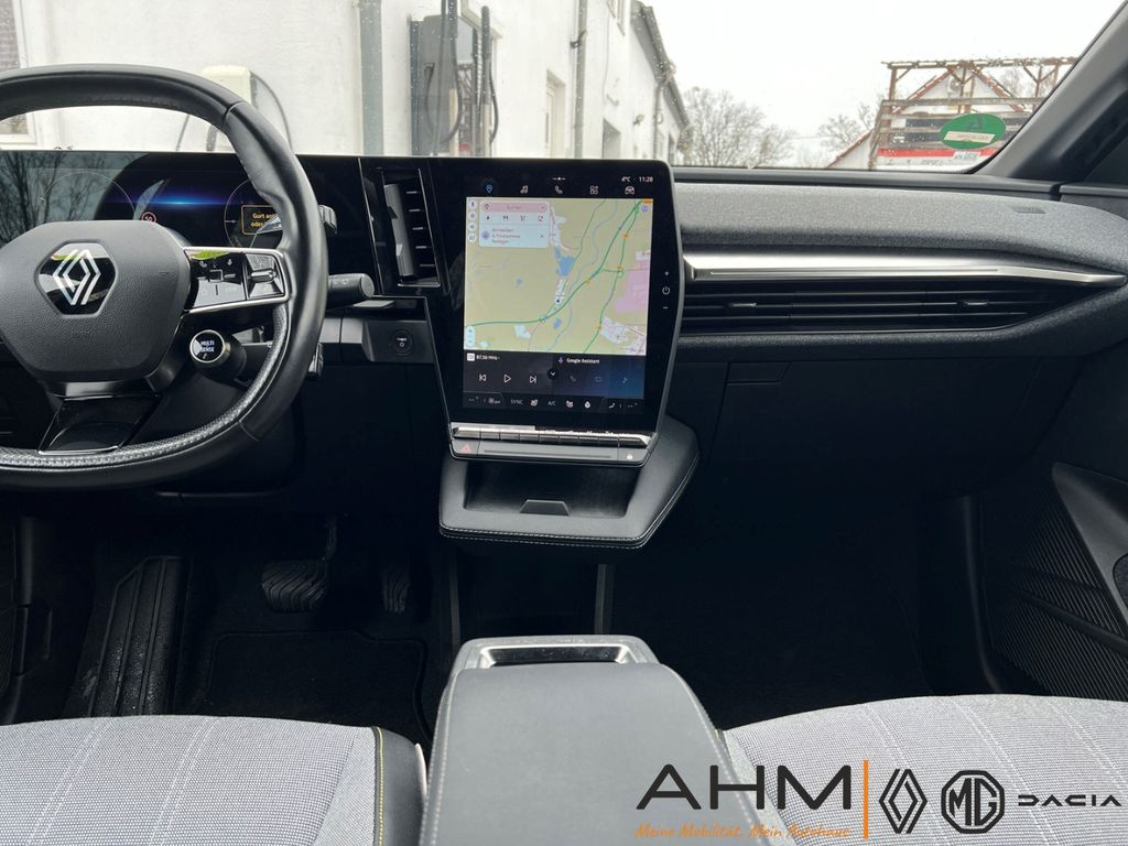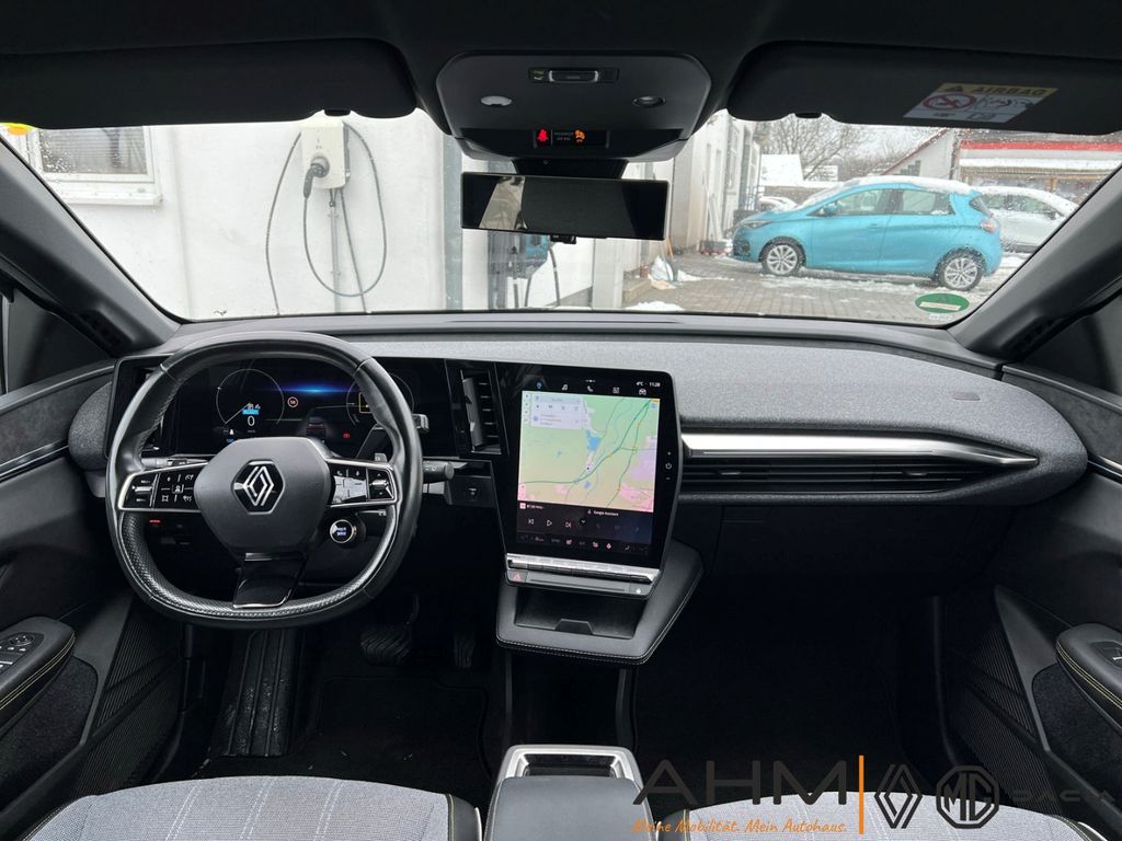 - Weiteres: Reifendruck-Kontrollsystem, Innenausstattung: Stoff, grau, LM-Felgen, Sitzbezug / Polsterung: Stoff/Kunstleder, Anthrazit-Schwarz, USB-Anschlüsse (Typ C) Mittelkonsole hinten, USB-Anschlüsse (Typ C) Mittelkonsole vorn, Heckscheibe heizbar, Reifen-Reparaturkit, Sitzheizung vorn, Ambiente-Beleuchtung, Fensterheber elektr. mit Impulsgeber, Scheinwerfer Full-LED, mit adaptivem Kurvenlicht, Schlechtwetter-Licht, LED-Signatur (Pure Vision), Geräuschsimulator (Außensound), Lenkrad heizbar, Elektromotor 96 kW, Infotainment-System: OpenR link (12 Zoll Touchscreen, Arkamys Auditorium Sound, Navigationssystem mit Google Maps), Sonderlackierung Metallic Black Pearl schwarz, Sonderlackierung Nacht-Blau, Airbag Fahrer-/Beifahrerseite, Nebelscheinwerfer, Tagfahrlicht LED, Seitenairbag vorn, Licht- und Regensensor, Verglasung hinten stark abgedunkelt, Wärmepumpe für Heizungs-/Klimaanlage, Kombiinstrument digital, Anti-Blockier-System (ABS), Abstandswarner, Aktiver Notbrems-Assistent, Außenspiegel elektr. anklappbar mit Memory, Beifahrerairbag abschaltbar, Berg-Anfahr-Assistent (HSA), Dachantenne im Haifischflossen-Design, Einparkhilfe hinten inkl. Rückfahrkamera, Elektr. Bremskraftverteilung, elektr. Fensterheber mit Einklemmschutz, Elektron. Stabilitäts-Programm, Fernlichtassistent, Fußgängererkennung, Gurtwarner, Induktionsladeschale für Smartphone, Innenspiegel mit Abblendautomatik, Isofix-Aufnahmen für Kindersitz, Klimaautomatik 2-Zonen mit autom. Umluft-Control, Kopfstützen hinten, Lederlenkrad, Lendenwirbelstütze elektr. verstellbar, Mittelarmlehne vorn mit Ablagefach, Müdigkeitserkennungs-Sensor, Multi-Sense (Fahrmodusschalter), Querverkehrs-Assistent, Rücksitzbank geteilt/klappbar, Schnellladefunktion 22 kW (AC), Sicherheitssystem mit automatischem Notruf (ERA GLONASS / eCall), Smartphone Schnittstelle, Spurhalteassistent Aktiv, Verkehrszeichenerkennung mit Geschwindigkeits-Warnanzeige, Zentralverriegelung / Startanlage Handsfree Entry & Drive, ZV mit Fernbedienung