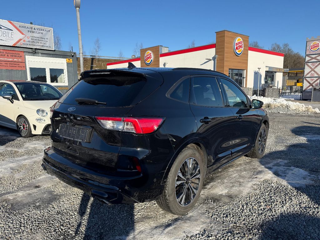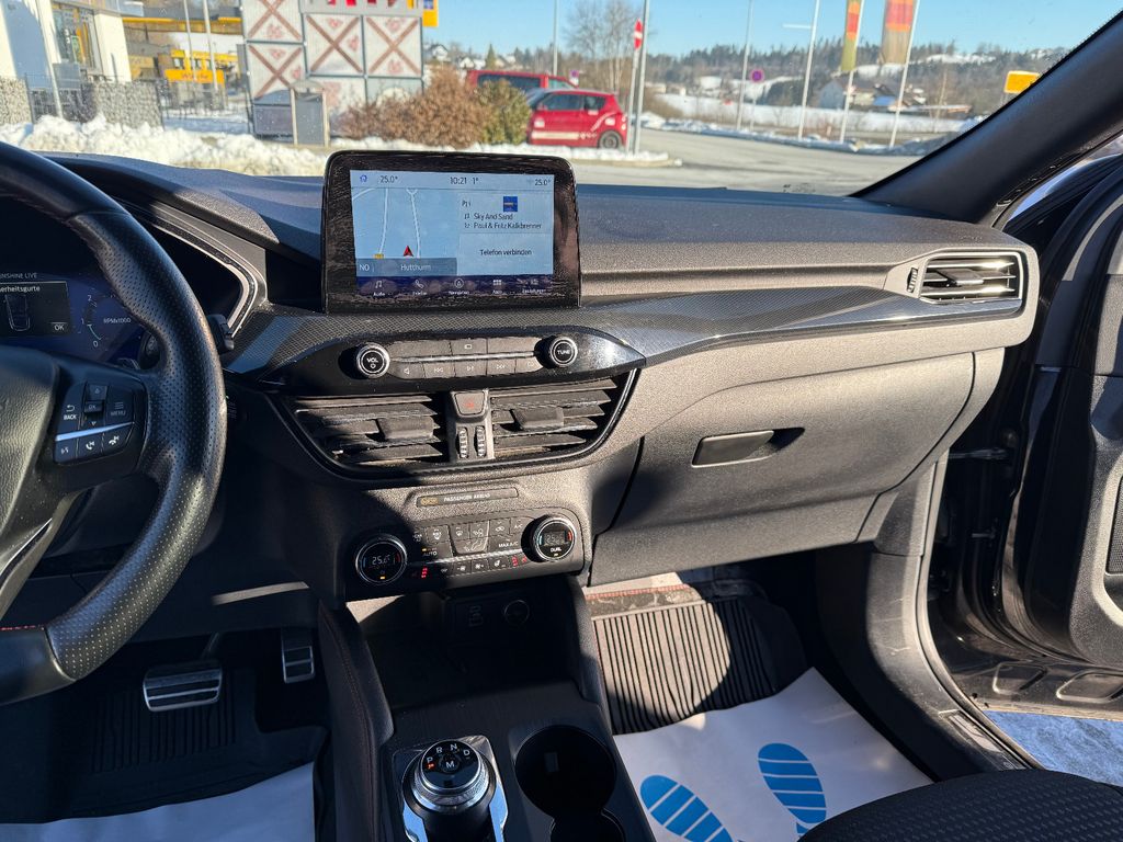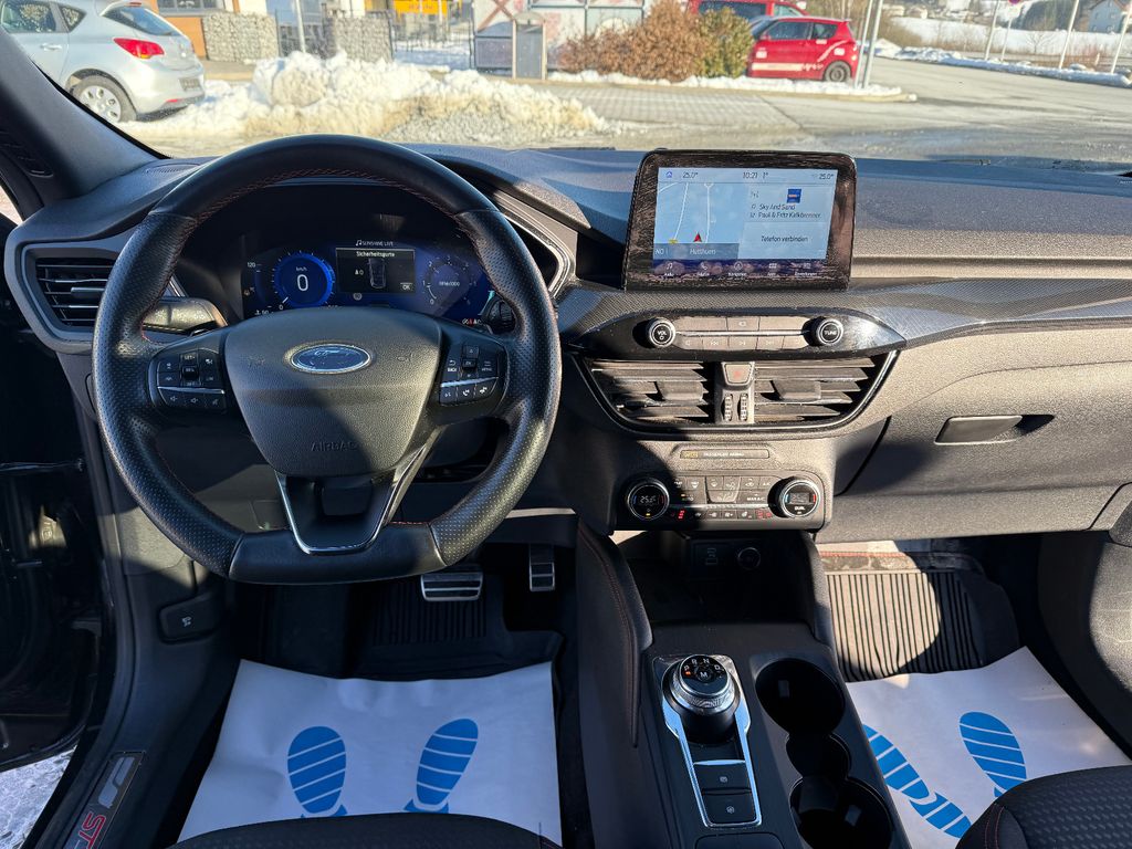 Ambiente-Beleuchtung vorn (LED), Antischlupfregelung (ASR), Audio-Navigationssystem Ford mit AppLink, Außenspiegel elektr. anklappbar, Außenspiegel elektr. verstell- und heizbar, Body-Styling-Paket, Bordcomputer, Brillenfach in Dachhimmel / Dachkonsole integriert, Dachhimmel Stoff, dunkel, Dachreling schwarz, Doppelendrohr Auspuffanlage, Eco-Anzeige für verbrauchsoptimiertes Fahren (EcoCoach), Fahrassistenz-System: Notbrems-Assistent, Fahrassistenz-System: Post-Collision-System, Fahrassistenz-System: Pre-Collision-System, Fahrassistenz-System: Spurhalteassistent, Fensterheber elektrisch vorn + hinten mit Komfortschließung, FordPass Connect inkl. eCall, Fußmatten ST-Design, Gepäckraumabdeckung / Rollo, Getriebe Automatik - Typ: 8F40 (8-Stufen), Heckleuchten LED, Induktionsladeschale für mobile Endgeräte, Innenspiegel mit Abblendautomatik, Intelligent Protection System (IPS), Isofix-Aufnahmen für Kindersitz, Karosserie: 5-türig, Kindersicherung elektrisch, Klimaautomatik 2-Zonen, Kombiinstrument Digitalanzeige 12,3 Zoll, Kopfstützen vorn 4-fach verstellbar, Lenkrad (Sport/Leder, ST), Lenksäule (Lenkrad) höhen-/längsverstellbar, Motor 2,0 Ltr. - 140 kW EcoBlue KAT, My Key (2. Fahrzeugschlüssel programmierbar), Parkbremse elektrisch mit Auto-Hold-Funktion, Parkpilotsystem vorn und hinten, Pedale Aluminium, Radstand 2710 mm, Reifen-Reparaturkit, Reifendruck-Kontrollsystem, Rücksitzlehne geteilt, Rücksitzlehne klappbar, Schadstoffarm nach Abgasnorm Euro 6d-TEMP, Schalt-/Wählhebelgriff Aluminium, Scheibenrahmen schwarz, Scheinwerfer LED, Scheinwerfer mit Ausschaltverzögerung, Scheinwerfer-Assistent mit Tag-/Nachtsensor, SCR-System (AdBlue-Technologie), Sitz vorn links verstellbar (8-fach), Sitz vorn rechts verstellbar (8-fach), Sitzheizung vorn, Sonnenblende links mit Spiegel (beleuchtet), Sonnenblende rechts mit Spiegel (beleuchtet), Sportsitze, Start/Stop-Anlage