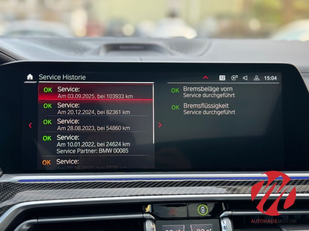 - Weiteres: Antriebsart: Allradantrieb, Isofix-Aufnahmen für Kindersitz an Rücksitz, Heckleuchten LED, Ambiente-Beleuchtung, Multifunktion für Lenkrad, Reifendruck-Kontrollsystem, Head-up-Display, Alarmanlage, Park-Distance-Control (PDC) vorn und hinten, Audiosystem BMW Professional (Radio), Schadstoffarm nach Abgasnorm Euro 6d-TEMP, Klimaautomatik 2,5-Zonen mit autom. Umluft-Control, Adaptives Fahrwerk M Professional, Außenspiegel elektr. anklappbar, alle Spiegel mit Abblendautomatik, HIFI-Lautsprechersystem, Lenkrad (Sport/Leder M-Technic) mit Multifunktion, Scheinwerfer LED, Anhängerkupplung (Kugelkopf schwenkbar), Sonnenschutzverglasung (hinten abgedunkelt), Geschwindigkeits-Regelanlage, Aktiv mit Stop&Go-Funktion, Sitze vorn mit Massagefunktion, Reifen-Reparaturset (Mobility-Pack), Komfortzugang (Öffnungs- und Schließsystem), Dachreling Hochglanz Shadow-Line, BMW Individuallackierung Tansanit-Blau II Metallic, Panoramadach Sky Lounge (Glas, LED-Beleuchtung), Parkassistent-Paket Plus, Scheinwerfer Laserlicht, Airbag Fahrer-/Beifahrerseite, Anti-Blockier-System (ABS), Seitenairbag vorn, Außenspiegel elektr. verstell- und heizbar, Kopf-Airbag-System hinten, Kopf-Airbag-System vorn, USB-Schnittstelle, Licht- und Regensensor, Service-System: Intelligenter Notruf inkl. TeleServices, BMW Live Cockpit Professional, Sound-System Bowers & Wilkins, LM-Felgen vorn/hinten: 10,5x21 / 11,5x22 (Sternspeiche 809 M, Jet Black), 5-Sitzer, Abdeckkappen Außenspiegel M Carbon, Ablage-Paket, Active Guard (Bremsassistent), Active Guard Plus (Spurhalteassistent, Frontkollisionswarnung), Aerodynamik-Paket M-Technic, Aktive Sitzbelüftung vorn, aktiver Spurhalteassistent, Ambient Air-Paket, Antriebsart: xDrive (Allrad), Außenspiegel elektr. anklappbar, Außenspiegel rechts mit Bordsteinautomatik, Ausstattungs-Paket: Connected Professional, Ausweich-Assistent, Automatik - mit Steptronic und Drivelogic (8-Stufen), BMW Display-Key, BMW Gestiksteuerung, Connected Teaser, DAB-Tuner, Driving Assistant, Driving Assistant Professional, Dynamische Tractions Control (DTC), elektr. Fahrersitz/Memory, Falschfahrwarnung, Fernlichtassistent, Gepäckraum-Paket, Geschwindigkeits-Begrenzeranlage (Speed Limit Device), Geschwindigkeits-Regelanlage mit Bremsfunktion, Getränkehalter vorn und hinten, Heckaufprall-Vermeidung (Prävention Heckkollision), Induktionsladeschale für Smartphone, Instrumententafel lederbezogen, Interieurleisten Carbon, Klimaautomatik 4-Zonen mit autom. Umluftv Kreuzungs-Assistent, LED-Hauptscheinwerfer, LED-Lichtelemente, Lendenwirbelstütze vorn, Lenkrad heizbar, Lenksäule elektr. verstellbar, M Competition, M Driver´s Package, M Multifunktionssitze vorn, M Sportbremsen (Bremssättel lackiert), Mittelarmlehne hinten, Motor 4,4 Ltr. - 460 kW V8 32V, Parkassistent-Paket, Parkbremse elektrisch, Personalisierungssystem, Polster: Voll-Leder Merino, Querverkehrs-Assistent, Rückfahr-Assistent