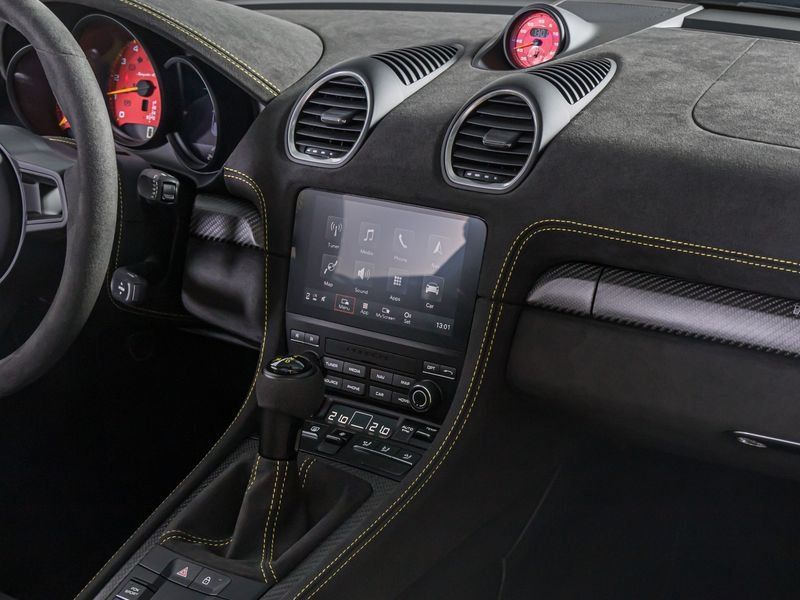 Scudo Porsche sul coperchio del vano portaoggetti in Race-Tex