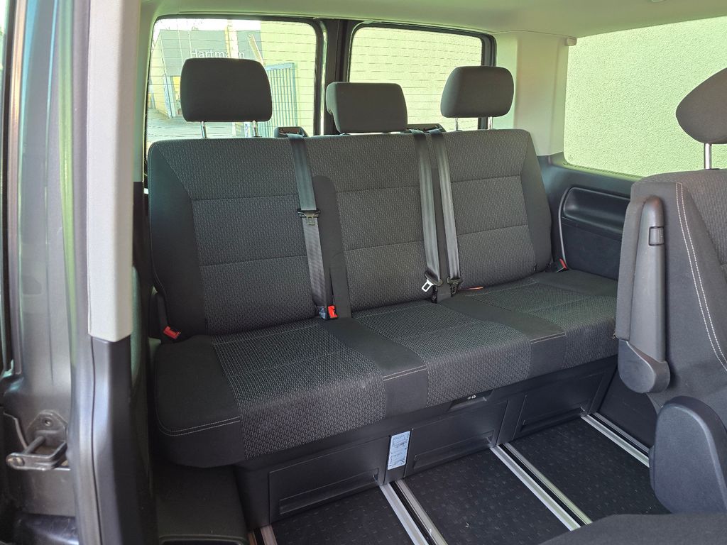 Abdeckung Schiebetürleiste, Airbag Beifahrer abschaltbar, Airbag Fahrer-/Beifahrerseite, Außenspiegel asphärisch, links, Außenspiegel konvex, rechts, Außenspiegel und Türgriffe außen schwarz, Bodenbelag im Fahrerhaus: Teppich, Bodenbelag im Lade-/Fahrgastraum Kunststoff, Doppeltonfanfare, Fahrassistenz-System: Bremsassistent (HBA), Fahrassistenz-System: Multikollisionsbremse (Multi Collision Brake), Fenster im Lade-/FG-Raum: - feststehend, vorn und hinten rechts, Frontscheibe Verbundglas getönt, Funkschlüssel (2) klappbar, Haltegriffe A-Säulen, Handschuhfach abschließbar, Heckscheibe heizbar, mit Wischanlage, Innenleuchten im Lade-/FG-Raum, Innenraumfilter: Pollenfilter, Karosserie/Aufbau: Bus, Kindersicherung an den Schiebetüren, Kraftstofftank: 70 Ltr., Lenksäule (Lenkrad) verstellbar, Motor 2,0 Ltr. - 110 kW TDI, Nichtraucher-Paket, Radstand 3000 mm, Reifen-Reparaturkit, Reifenkontroll-Anzeige, Schadstoffarm nach Abgasnorm Euro 6, Schiebetür Lade-/Fahrgastraum rechts, SCR-System (AdBlue-Technologie), Sitzbezug / Polsterung: Stoff, Sitze im Fahrerhaus: Beifahrersitz Komfort, Sitze im Fahrerhaus: Fahrer- und Beifahrersitz höhenverstellbar, Sitze im Fahrerhaus: Fahrersitz Komfort, Sitze im Fahrerhaus: Lendenwirbelstützen Fahrer- und Beifahrersitz, Sitze im Lade-/FG-Raum: 2.Reihe, 3er-Sitzbank, Sonnenblenden mit Spiegel, Start/Stop-Anlage Motor, Steckdose (12V-Anschluß) im Fahrerhaus, Stoßfänger in Wagenfarbe, Wärmeschutzverglasung, Zentralverriegelung mit Fernbedienung und Innenbetätigung, Zuheizer, Zul. Gesamtgewicht 3,00 t