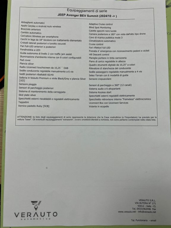 Jeep Avenger BEV Summit full-electric 156CV - Nuova Km0 05/2025Prezzo di listino €44.647 - Prezzo scontato €31.900 - possibilità trasformazione AutocarroN1 - possibilità di finanziamento, leasing, inoltre proponiamo noleggio con riscatto finale con anticipo pari al 30%, no scoring senza credenziali bancarie e anche a chi ha avuto problemi al crif