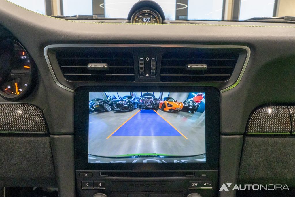 140 Dynamic engine mounts (PADM), 221 Porsche Torque Vectoring Plus (electronically controlled rear differential lock), 250 7-speed Porsche dual-clutch transmission (PDK), 918 Spyder full bucket seats, 470 Rear-axle steering, 475 Porsche Active Suspension Management (PASM) incl. 10 mm lowering, 534 Alarm system with interior surveillance, 567 Windscreen with grey top tint, 573 2-zone automatic climate control, 594 Alcantara roof lining, 7I0 VTS Security Package incl. Porsche Car Connect, 7UG Navigation module for PCM, 887 Steering wheel rim with 12 o’clock marking in yellow, 9WT Apple CarPlay including Siri voice control, 9ZC Smartphone compartment, I8L Porsche Communication Management (PCM) incl. online navigation, XGB Carbon dashboard trim, XHM Carbon center console trim, XJW SportDesign exterior mirror upper housing in carbon, XWC Carbon door panel trim, XXP Tinted rear lights, XYB Fuel filler cap in aluminium look