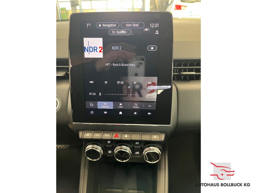 - Weiteres: Reifendruck-Kontrollsystem, Elektron. Stabilitäts- und Traktionskontrolle (MASC + MATC), Geschwindigkeits-Regelanlage (Tempomat), Mittelarmlehne vorn, Rückfahrkamera, Lenksäule (Lenkrad) höhen-/längsverstellbar, Scheinwerfer LED, Reifen-Reparaturkit, Ambiente-Beleuchtung, Laderaumabdeckung, LM-Felgen, Einparkhilfe hinten, Einparkhilfe vorn, Notrufsystem, Schadstoffarm nach Abgasnorm Euro 6d, Smartphone kabellose Schnittstelle (Apple CarPlay & Android Auto), Getriebe Automatik - Multi-Mode, Stoßfängerblende und Heckdiffusor schwarz glänzend, Fahrassistenz-System: aktiver Spurfolgeassistent (LCA), Innenausstattung: Cockpitverkleidung mit Soft Touch Oberfläche, Innenausstattung: Dekorelemente grau, gemustert, Innenbeleuchtung LED, hinten, Fahrassistenz-System: Aufmerksamkeits-Assistent (DAM), Airbag Fahrer-/Beifahrerseite, Anti-Blockier-System (ABS), Rücksitz geteilt / klappbar, Tagfahrlicht LED, Seitenairbag vorn, Start-Stop-Knopf, Außenspiegel elektr. verstell- und heizbar, Kopf-Airbag-System hinten, Kopf-Airbag-System vorn, AUX-IN-Anschluss (iPod / MP3-Player), Bluetooth-/Audio-Schnittstelle, Parkbremse elektrisch mit Auto-Hold-Funktion, Heckleuchten LED, C-förmig mit Signature, Kombiinstrument digital (7,0 Zoll), Metallic-Lackierung, 12V-Steckdose in Mittelkonsole, Adaptive Cruise Control / ACC, Auffahrwarnsystem inkl. Fußgängererkennung und Notbremsassistent (FCM+), Außenspiegel elektr. anklappbar, Beifahrerairbag abschaltbar, Berganfahrhilfe, Bremsassistent, Dachantenne im Haifischflossen-Design, Dachhimmel grau, Elektr. Bremskraftverteilung, Fensterheber elektrisch vorn und hinten, Fernlichtassistent, Freisprechanlage Bluetooth, Gurtstraffer vorn, Heckscheibe heizbar, Hybrid 105 kW E-Tech (Motor 1,6 Ltr. - 69 kW), Induktionsladeschale für Smartphone, Innenbeleuchtung LED, Innenspiegel mit Abblendautomatik, Isofix-Aufnahmen für Kindersitz, Klimaautomatik, Lederlenkrad, Lenkrad heizbar, Motor 1,6 Ltr. - 69 kW E-Tech Hybrid, Multimedia-System Easy Link mit Navigationssystem (Touchscreen 9,3), Notbrems-Warnblinkautomatik (ESS), Polster: Stoff/Kunstleder, Radioempfang digital (DAB+), Regen-/Lichtsensor, Schließ-/Startsystem Smart Key, Service-System: Google Services, Sitzheizung vorn, Sitzhöhenverstellung, Sitzhöhenverstellung Fahrersitz, Spurhalteassistent, Start/Stop-Anlage (ASG), Türgriffe lackiert, Unterfahrschutz vorn und hinten schwarz glänzend, Verglasung hinten abgedunkelt, Verkehrszeichenerkennung (TSR), Wärmeschutzverglasung, Warnsystem Totwinkel (Blind Spot Warning, BSW), ZV mit Fernbedienung