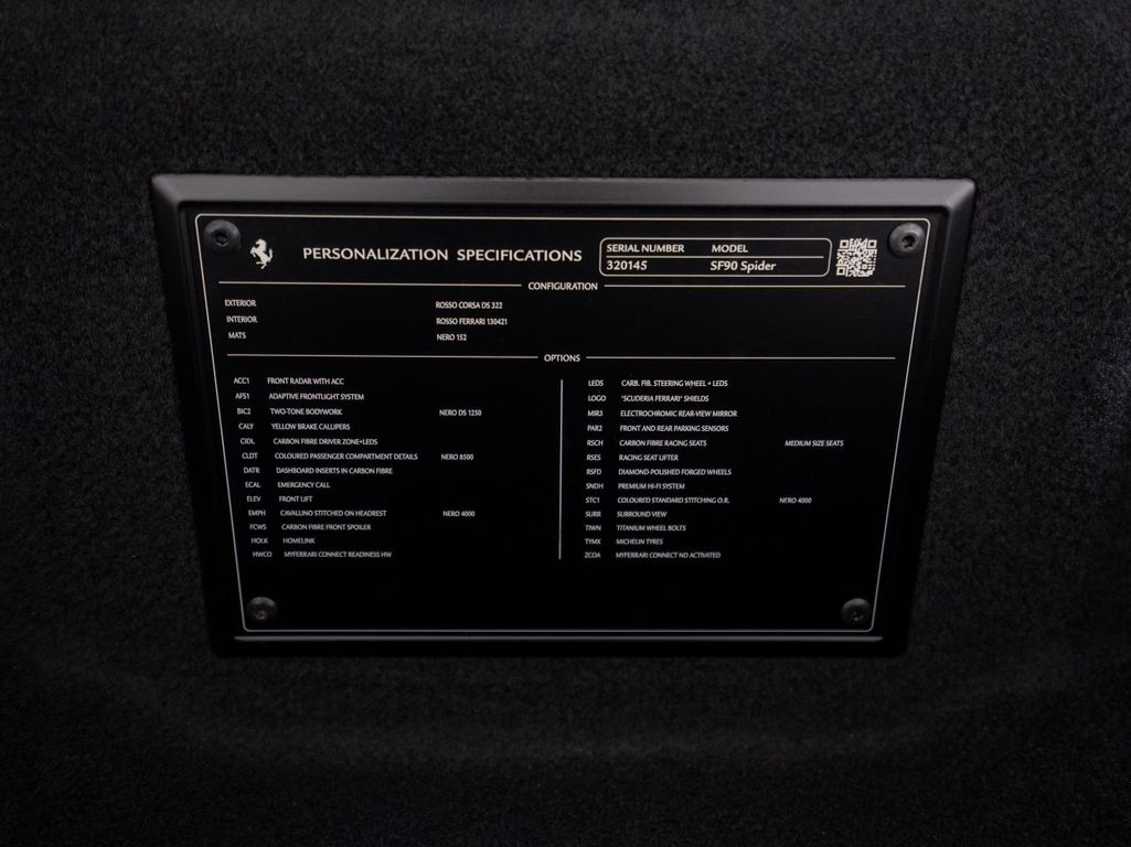 Weitere Informationen zum Ferrari SF90 Spider finden Sie auch auf der Ferrari Website:Sonderausstattung ab Werk: