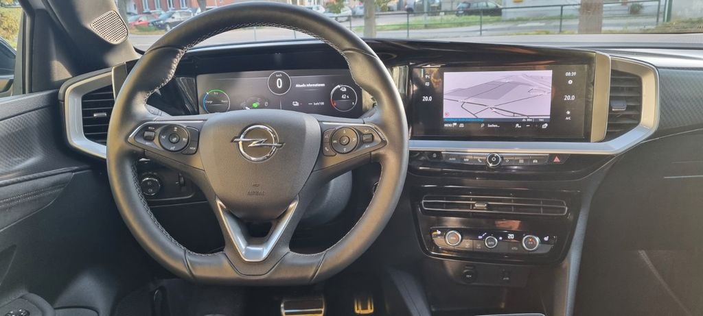 6 Lautsprecher, Akustischer Fußgängerschutz (Außensound), Bluetooth Audio-Streaming, DAB-Tuner (Radioempfang digital), Dach Diamant-Schwarz, Dachhimmel schwarz, Dachspoiler, Elektrofahrzeug, Elektromotor 100 kW (cont. 57 kW), Elektron. Stabilitäts-Programm Plus (ESP), Fahrassistenz-Paket: Active Drive Assist, Fahrassistenz-Paket: Active Drive Assist plus, Fahrassistenz-System: Müdigkeitserkennungs-Sensor, Fahrassistenz-System: Verkehrszeichenerkennung, Feststellbremse elektrisch, Freisprecheinrichtung (Bluetooth) mit Sprachsteuerung, Gepäck-/Laderaumboden doppelt, Innenausstattung: Leder Alcantara, Karosserie: 5-türig, Klimaautomatik, Kopf-Airbag-System, Kühlergrill, Opel Vizor, Rahmen in Chrom, Ladekabel mit Schukostecker (Mode 2), Ladevorrichtung On-Board-Lader (11 kW), Lenkrad heizbar, LM-Felgen, MP3-Schnittstelle für Mobiltelefon/Handy, Nebelscheinwerfer LED, Radstand 2561 mm, Reifen-Reparaturkit, Seitenairbag vorn, Sicht-Paket, Sitzheizung vorn, Technologie-Paket Park & Go, Voll-LED (IntelliLux), Wärmepumpe zur Reichweitenoptimierung, Wärmeschutzverglasung, Wärmeschutzverglasung hinten abgedunkelt (Solar-Protect)