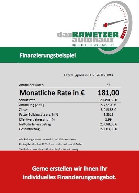 - Finanzierung auch ohne Anzahlung möglich.