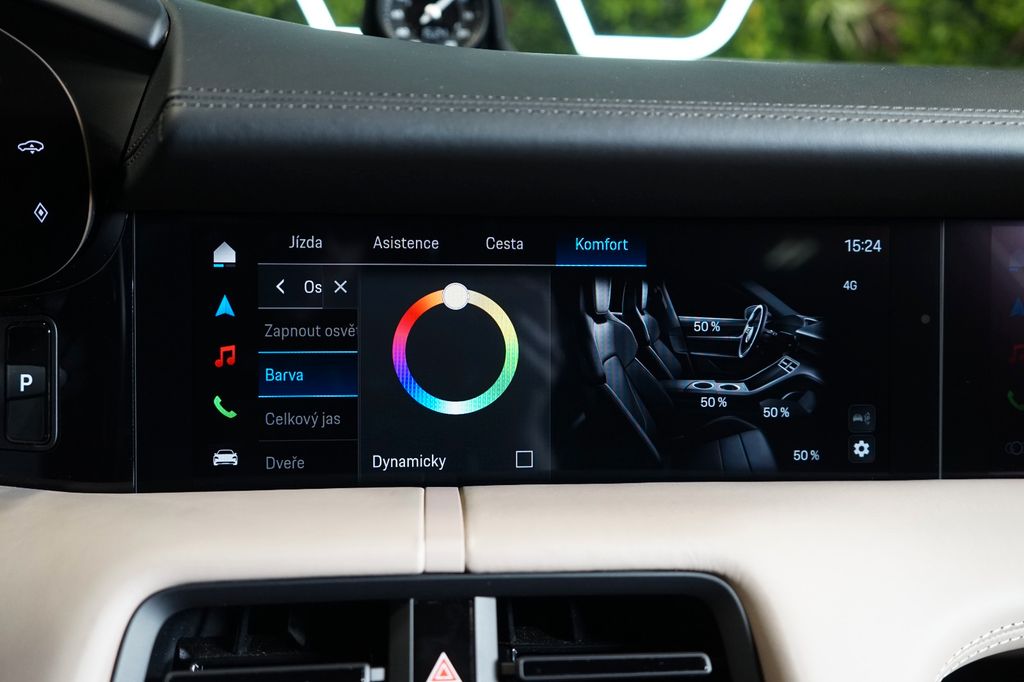 Ablage-Paket, Ambiente-Beleuchtung, Außenspiegel Oberschale Carbon, Dachreling, Einstiegsblenden (Carbon) beleuchtet, Fahrassistenz-System: aktiver Park-Assistent vorn und hinten inkl. Rückfahrkamera und Surround View, Fahrassistenz-System: Nachtsicht-Assistent, Fahrassistenz-System: Park-Assistent vorn und hinten inkl. Rückfahrkamera und Surround View, Fahrwerk selektiv hydraulisch höhenverstellbar und einstellbar (Porsche Active Ride), Fzg. ohne Carbon-Applikationen (Ausführung in schwarz), Head-up-Display, Heizungs-/Klimaanlage: Wärmepumpe, Ionisator zur Luftreinigung, Klimaautomatik 4-Zonen, Komfortzugang (Schlüssellose Türentriegelung), Kopfstützen vorn und hinten mit Porschewappen, Leuchtenband mit Porsche-Schriftzug farbig, LM-Felgen vorn/hinten: 9,5x21 / 11,5x21 (Taycan Exclusive Design Rad glanzgedreht, mit Aeroblade), Panorama-Glasdach (vollverglaste Dachfläche), Reifen-Reparaturkit, Seitenairbag hinten, Sitzbelüftung vorn, Soft Close Türen, Sound-System BOSE, Türgriffe außen schwarz lackiert (Hochglanz), Verglasung hinten abgedunkelt (Privacyverglasung), Vierradlenkung