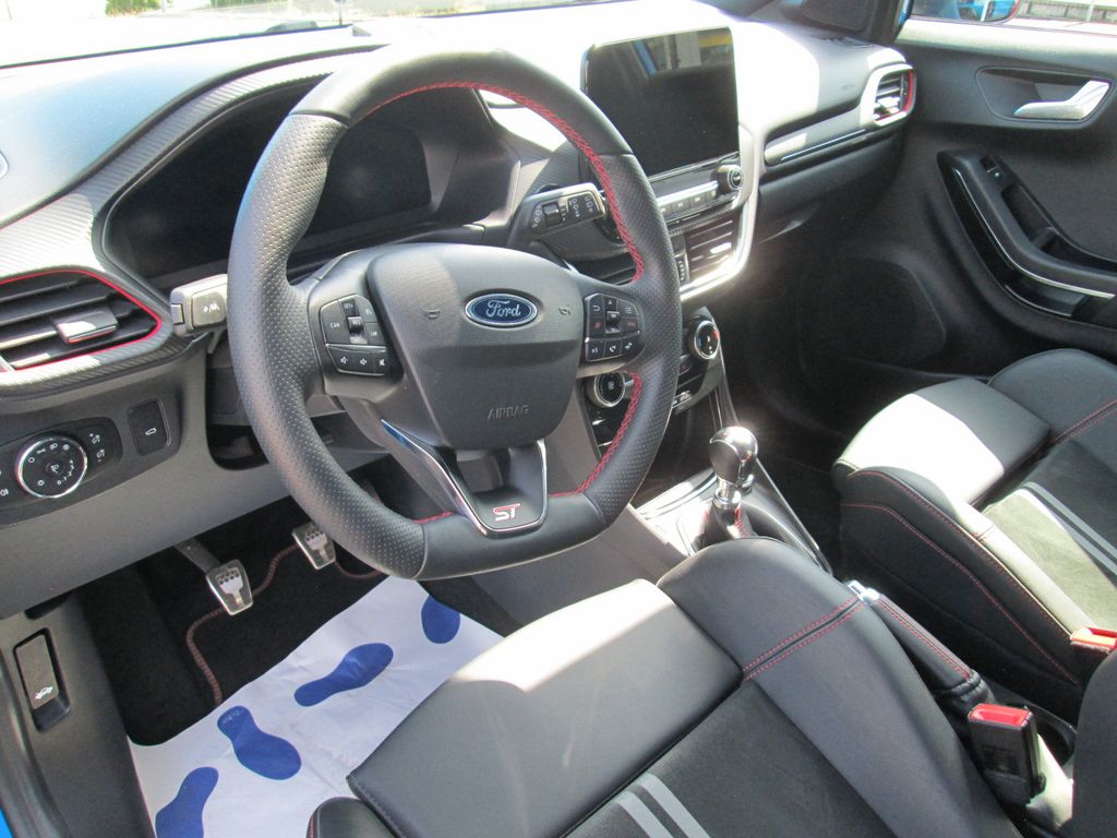 Ambiente-Beleuchtung vorn (LED), Antischlupfregelung (ASR), Audio-Navigationssystem Ford mit AppLink, Außenspiegel elektr. anklappbar, Außenspiegel elektr. verstell- und heizbar, Body-Styling-Paket, Dach andersfarbig lackiert / Kontrastfarbe, Dachhimmel Stoff, dunkel, Dachspoiler (große Ausführung) schwarz lackiert, Doppelendrohr Auspuffanlage, Eco-Anzeige für verbrauchsoptimiertes Fahren (EcoCoach), Einparkhilfe hinten, Fahrassistenz-System: Berganfahr-Assistent (Hill-Holder), Fahrassistenz-System: Falschfahrer-Warnfunktion, Fahrassistenz-System: Fernlichtassistent (Scheinwerfer mit Abblendautomatik), Fahrassistenz-System: Notbrems-Assistent, Fahrassistenz-System: Post-Collision-System, Fahrassistenz-System: Pre-Collision-System, Fahrassistenz-System: Spurhalteassistent mit Müdigkeitserkennungs-Sensor, Fahrassistenz-System: Totwinkel-Assistent, Cross Traffic Alert und Notbremsfunktion, Fahrassistenz-System: Verkehrsschildassistent, Farbdisplay für Bordcomputer, Fensterheber elektrisch vorn + hinten mit Komfortschließung, FordPass Connect inkl. eCall, Fußmatten ST-Design, Heckleuchten LED, Innenraumfilter: Staub- und Pollenfilter, Innenspiegel mit Abblendautomatik, Intelligent Protection System (IPS), Intelligenter Geschwindigkeits-Begrenzer, Isofix-Aufnahmen für Kindersitz, Karosserie: 5-türig, Kombiinstrument Digitalanzeige 12,3 Zoll, Kopfstützen hinten mechan. verstellbar (3 Stück), Lackierung Cactus Grey, Laderaumboden variabel (Ford Megabox), Lendenwirbelstütze vorn, Lenkrad (Sport/Leder, ST), Lenksäule (Lenkrad) höhen-/längsverstellbar, LM-Felgen, Motor 1,5 Ltr. - 147 kW EcoBoost KAT, My Key (2. Fahrzeugschlüssel programmierbar), Nebelscheinwerfer LED, Otto-Partikelfilter (OPF), Parkpilotsystem vorn, Pedale Aluminium, Radstand 2588 mm, Reifen-Reparaturkit, Reifendruck-Kontrollsystem, Rücksitzlehne geteilt/klappbar (60:40), Schadstoffarm nach Abgasnorm Euro 6d, Scheinwerfer LED, Scheinwerfer-Assistent mit Tag-/Nachtsensor, Sonnenblende links mit Spiegel (beleuchtet), Sonnenblende rechts mit Spiegel (beleuchtet), Sport-Fahrwerk mit Spezial-Radaufhängung, Sportsitze vorn (Recaro) Teilleder, Start/Stop-Anlage, Türgriffe außen Wagenfarbe, Verglasung hinten abgedunkelt (Privacy Glass)