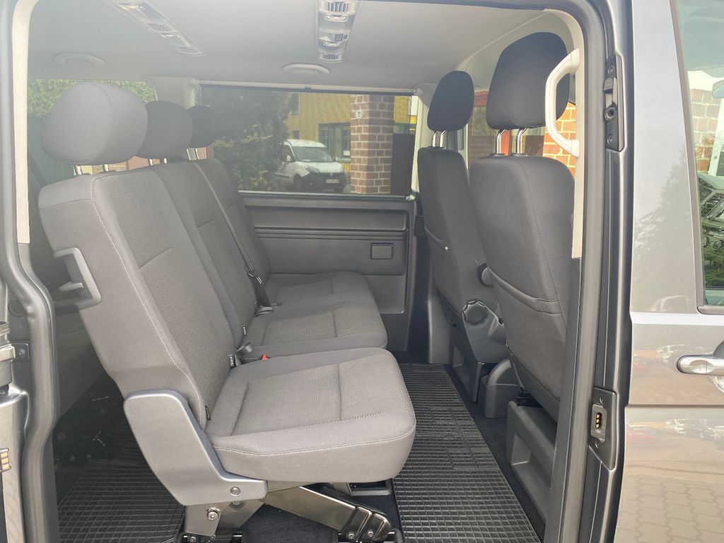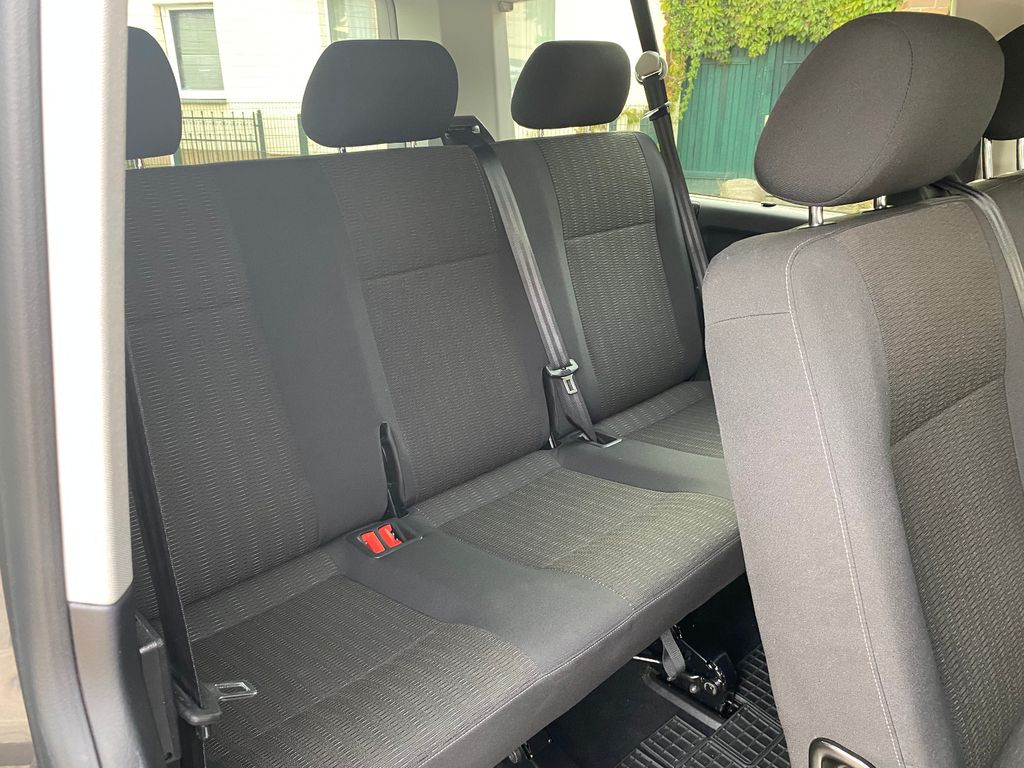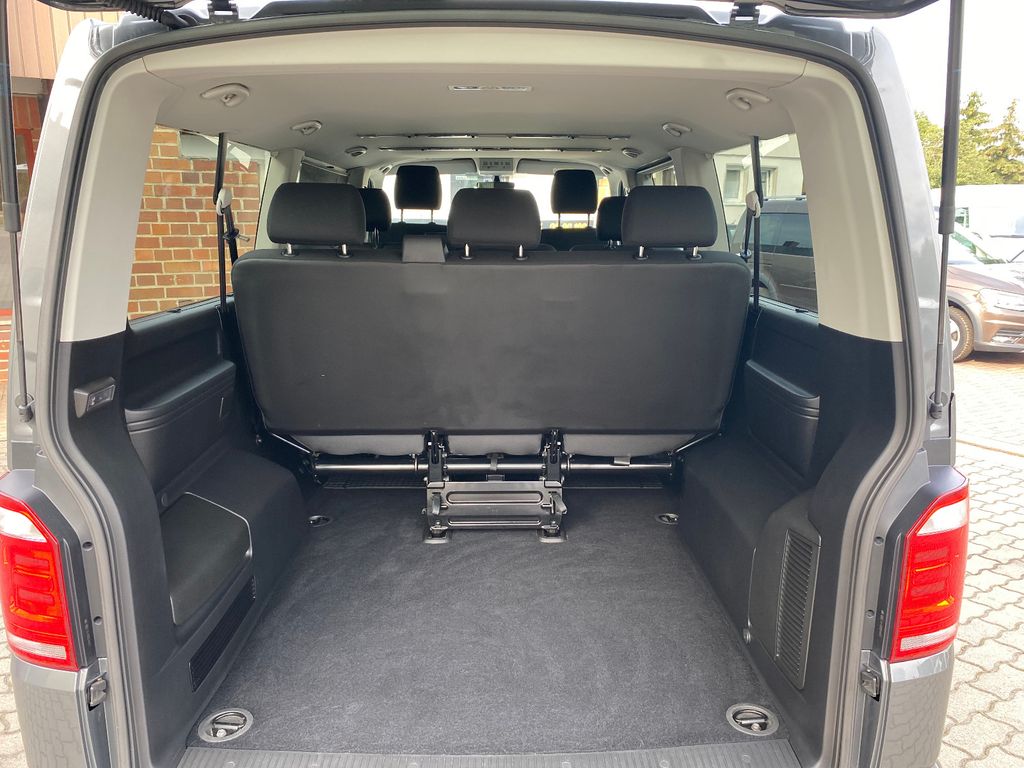Abdeckung Schiebetürleiste, Airbag Beifahrer abschaltbar, Airbag Fahrer-/Beifahrerseite, Anzeige für Waschwasserstand, Außenspiegel elektr. verstell- und heizbar, Außenspiegel konvex, links, Außenspiegel konvex, rechts, Außenspiegel und Türgriffe außen in Wagenfarbe, Blinkleuchten seitlich in Chromoptik, Bodenbelag: Teppich, Doppeltonfanfare, Fahrassistenz-System: Bremsassistent (HBA), Fahrassistenz-System: Multikollisionsbremse (Multi Collision Brake), Fenster im Lade-/FG-Raum: - feststehend, vorn und hinten links, Fenster im Lade-/FG-Raum: - feststehend, vorn und hinten rechts, Freilaufkupplung für Doppelkupplungsgetriebe, Frontscheibe Verbundglas getönt, Funkschlüssel (2) klappbar, Handschuhfach abschließbar, Heckklappe mit Verglasung, Heckscheibe heizbar, mit Wischanlage, Innenleuchten im Lade-/FG-Raum: Trittstufenleuchten, Innenraumfilter: Pollenfilter, Karosserie/Aufbau: Bus, Kindersicherung im Lade-/Fahrgastraum, Kraftstofftank: 70 Ltr., Kühlergrill schwarz lackiert, mit Chromleisten, Lenksäule (Lenkrad) verstellbar, Mobiltelefon Schnittstelle Bluetooth, Motor 2,0 Ltr. - 110 kW TDI, Multifunktionsanzeige Plus, Nichtraucher-Paket, Radstand 3400 mm, Reifenkontroll-Anzeige, Schadstoffarm nach Abgasnorm Euro 6d-TEMP, Schiebetür Lade-/Fahrgastraum rechts, SCR-System (AdBlue-Technologie), Seitenairbag / Kopfairbag (Curtain-Airbag) vorn, Sitzbezug / Polsterung: Stoff, Sitze im Fahrerhaus: Fahrer- und Beifahrersitz höhenverstellbar, Sitze im Fahrerhaus: Lendenwirbelstützen Fahrer- und Beifahrersitz, Sitze im Lade-/FG-Raum: 2.Reihe, 2er-Sitzbank, Sonnenschutzrollo im Fahrgastraum, Start/Stop-Anlage Motor, Steckdose (12V-Anschluß) im Fahrerhaus, Stoßfänger in Wagenfarbe, Türablagekasten vorn, Wärmeschutzverglasung, Zentralverriegelung mit Fernbedienung und Innenbetätigung, Zuheizer, Zul. Gesamtgewicht 3,08 t