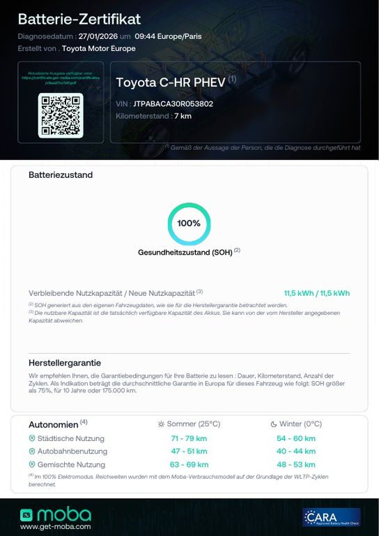 Das Fahrzeug verfügt über ein Batterie Zertifikat.ASSISTENZSYSTEME