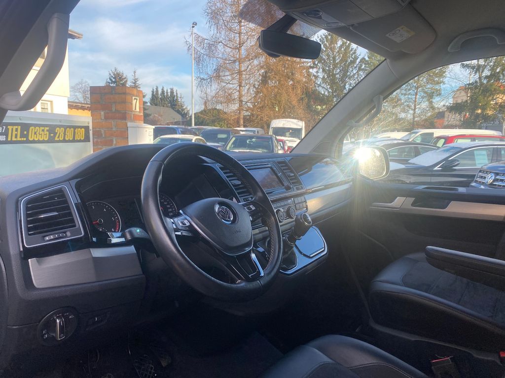 Abdeckung Schiebetürleiste, Airbag Beifahrer abschaltbar, Airbag Fahrer-/Beifahrerseite, Armaturentafel Komfort, Ausstattungs-Paket Licht + Sicht, Außenspiegel asphärisch, links, Außenspiegel elektr. verstell-, heiz- und anklappbar, Außenspiegel konvex, rechts, Außenspiegel und Türgriffe außen in Wagenfarbe, Bodenbelag im Fahrerhaus: Teppich, Bodenbelag: Teppich verstärkt, Chromleisten Stoßfänger vorn, seitlich und Heckklappe unten, Doppeltonfanfare, Dämmglas-Paket, Fahrassistenz-System: Autom. Distanzregelung (ACC) und Umfeldbeobachtungssystem (Front Assist), Fahrassistenz-System: Bremsassistent (HBA), Fahrassistenz-System: Multikollisionsbremse (Multi Collision Brake), Fahrassistenz-System: Müdigkeitserkennungs-Sensor, Fahrassistenz-System: Spurwechselassistent (Side Assist / Blind Spot Sensor), Fenster im Lade-/FG-Raum: - feststehend, vorn und hinten links, Fenster im Lade-/FG-Raum: - feststehend, vorn und hinten rechts, Fußmatten Fahrerhaus: Velours, Gepäckraumabdeckung / Rollo, Haltegriffe A-Säulen, Handschuhfach abschließbar, Heckklappe mit Verglasung, Heckscheibe heizbar, mit Wischanlage, Innenausstattung: Dekoreinlagen Dark Silver brushed (Dekorband Black Glossy), Innenleuchten im Fahrerhaus: Leseleuchten vorn (2), Innenleuchten im Lade-/FG-Raum: Trittstufenleuchten, Innenraumfilter: Pollenfilter, Karosserie/Aufbau: Bus, Kindersicherung an den Schiebetüren, Klimaautomatik Climatronic (Fahrerhaus + Lade-/Fahrgastraum), Kraftstofftank: 80 Ltr., Kühlergrill schwarz lackiert, mit Chromleisten, Ladekanten-/ Trittstufenabdeckungen in Edelstahl, Lenksäule (Lenkrad) verstellbar, LM-Felgen, Motor 2,0 Ltr. - 150 kW TDI, Multifunktionsanzeige Premium (Farbdisplay), Multimedia-Schnittstelle USB (iPhone / iPod) mit AUX-IN, Nichtraucher-Paket, Radstand 3000 mm, Reifenkontroll-Anzeige, Schadstoffarm nach Abgasnorm Euro 6, Scheinwerfer und Heckleuchten LED, Schiebetür Lade-/Fahrgastraum rechts, SCR-System (AdBlue-Technologie), Seitenscheiben Dämmglas, Sitzbezug / Polsterung: Alcantara, Sitze im Fahrerhaus: Beifahrersitz Komfort, Sitze im Fahrerhaus: Fahrer- und Beifahrersitz heizbar, Sitze im Fahrerhaus: Fahrer- und Beifahrersitz höhenverstellbar, Sitze im Fahrerhaus: Fahrersitz Komfort, Sitze im Fahrerhaus: Lendenwirbelstützen Fahrer- und Beifahrersitz, Sitze im Lade-/FG-Raum: 1.Reihe, 2 Drehsitze, Sitze im Lade-/FG-Raum: 2.Reihe, 3er-Sitzbank, Sonnenblenden mit Spiegel (beleuchtet), Sonnenschutzrollo im Fahrgastraum, Start/Stop-Anlage Motor, Steckdose (12V-Anschluß) im Fahrerhaus, Stoßfänger in Wagenfarbe, Türablagekasten vorn, Verkleidung im Lade-/FG-Raum: Komfort, Zentralverriegelung mit Fernbedienung und Innenbetätigung, Zuheizer, Zul. Gesamtgewicht 3,00 t