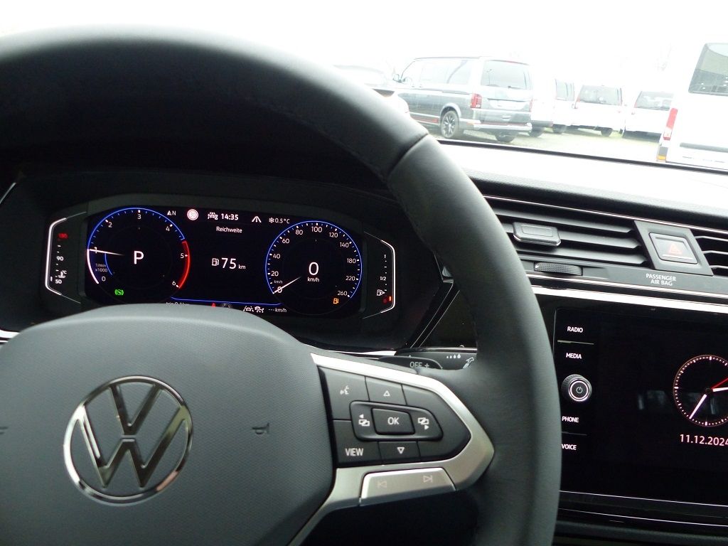 Multifunktionslenkrad in Leder, mit Schaltwippen; Digital Cockpit Pro, mehrfarbig, verschiedene Info-Profile wählbar; Netztrennwand; Textilfußmatten vorn und hinten; Dekoreinlagen "Piano Black" für Mittelkonsole; Verbandtasche, Warndreieck und Warnweste; Dachhimmel in Storm Grey; Gepäckraumabdeckung mit Komfortöffnung, auszieh-, herausnehm- und verstaubar; Dekoreinlagen "Piano Black" für Instrumententafel und Türverkleidungen vorn