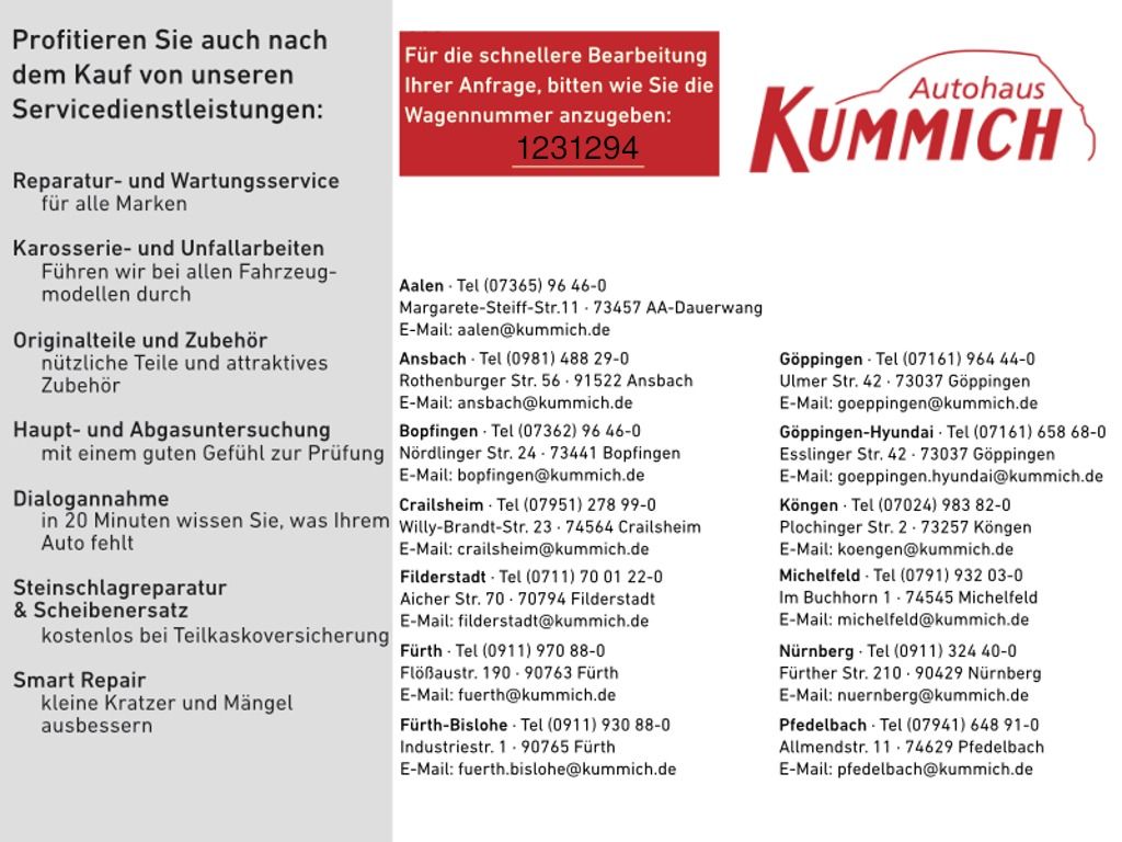 - Den genauen Ausstattungsumfang erhalten Sie von unserem Verkaufspersonal, bitte kontaktieren Sie uns.