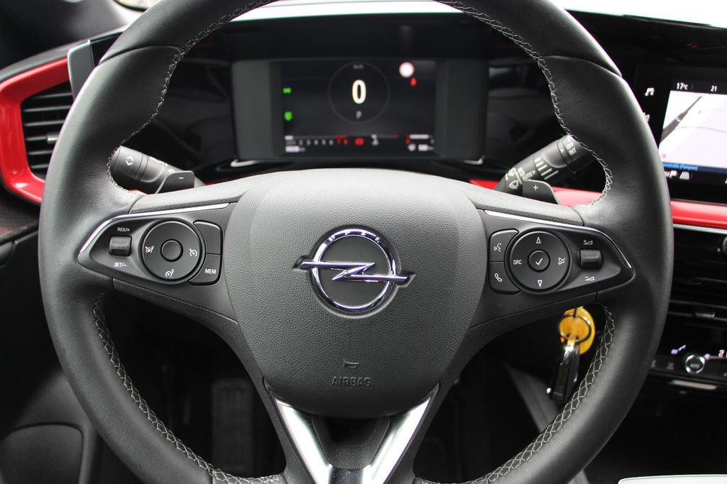 Dieser gepflegte Opel Mokka aus 2021 überzeugt durch seine umfangreiche Ausstattung und den sehr guten Zustand. Mit nur einem Vorbesitzer und lückenloser Servicehistorie bietet dieses SUV ein zuverlässiges Fahrerlebnis. Der 3-Zylinder Benzinmotor mit 131 PS sorgt für angenehme Fahrleistungen bei gleichzeitig wirtschaftlichem Verbrauch (Euro 6). Die rote Metallic-Lackierung in Kombination mit Leichtmetallfelgen verleiht dem Fahrzeug einen sportlichen Charakter. Im Innenraum erwarten Sie schwarze Stoffsitze, ein digitales Cockpit und ein Multifunktionslenkrad mit Leder. Die 2-Zonen-Klimaautomatik, beheizbare Sitze und das Winterpaket garantieren Komfort zu jeder Jahreszeit. Modernste Assistenzsysteme wie Spurhalteassistent, Verkehrszeichenerkennung und Kollisionsvermeidung erhöhen die Sicherheit. Das Infotainmentsystem mit Navigation, Apple CarPlay, Android Auto und DAB-Radio bietet optimale Konnektivität.