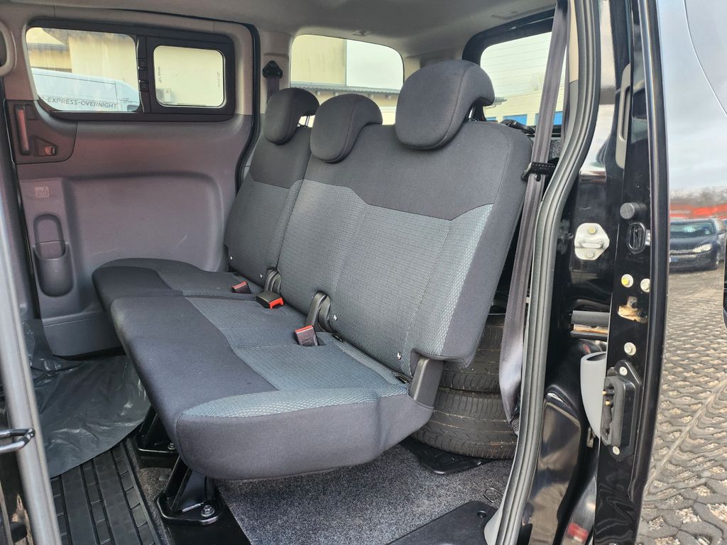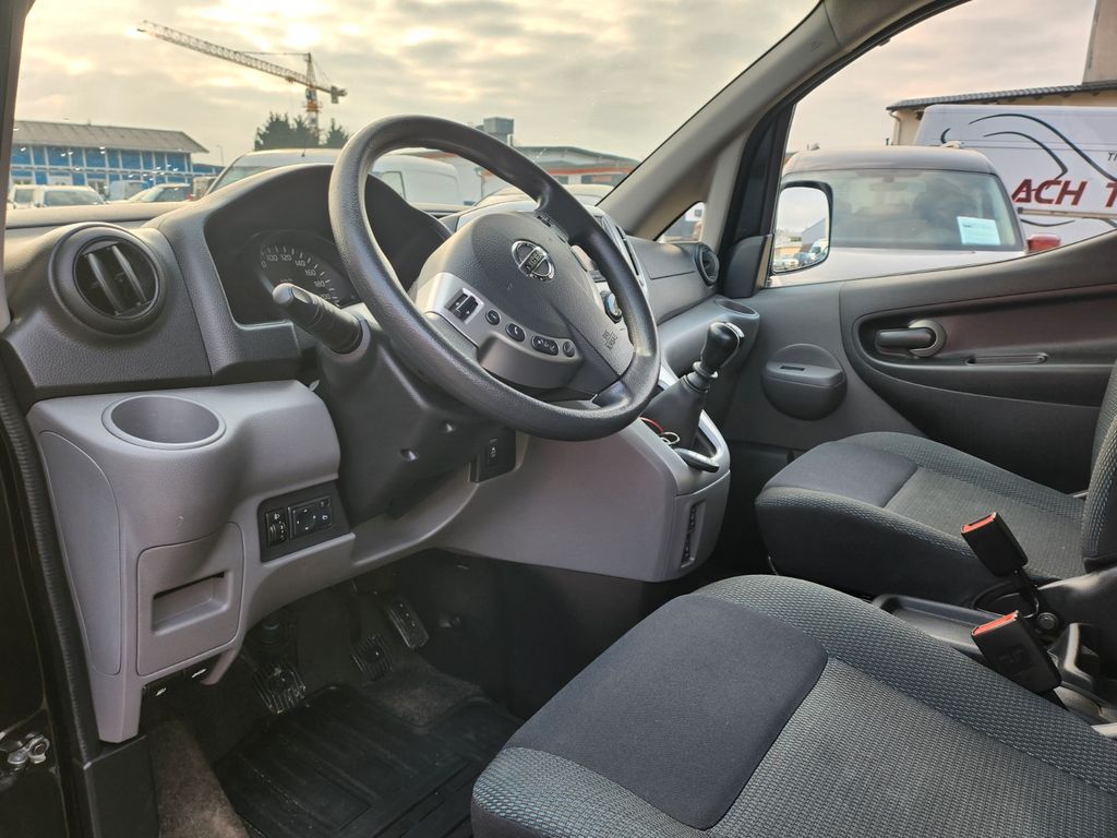 Airbag Fahrer-/Beifahrerseite, Audiosystem: Radio mit CD-Player mit Bluetooth, Automatische Fahrlichtschaltung, Außenspiegel elektr. verstell- und heizbar, Außenspiegel in Wagenfarbe, Bodenbelag: Teppich, Bordcomputer, Bremsassistent (Nissan Brake-Assist), Elektr. Bremskraftverteilung (EBD), Freisprecheinrichtung Bluetooth, Heckklappe verglast, Isofix-Aufnahmen für Kindersitz an Rücksitz, Karosserie/Aufbau: Bus, Klimaautomatik, Lenksäule (Lenkrad) höhenverstellbar, LM-Felgen, Motor 1,5 Ltr. - 81 kW dCi KAT, Nebelschlussleuchte, Radstand 2725 mm, Reifen-Reparaturkit, Rückfahrkamera, Schadstoffarm nach Abgasnorm Euro 6, Seitenairbag vorn, Sitze im Fahrerhaus: Fahrer- und Beifahrersitz heizbar, Sitze im Lade-/FG-Raum: 2.Reihe, 3er-Sitzbank, Steckdose 12V im Lade-/Fahrgastraum, Stoßfänger in Wagenfarbe, Türgriffe außen in Wagenfarbe, USB-Anschluss, Verglasung hinten abgedunkelt
