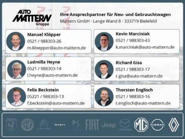 Die angegebenen Verbrauchsangaben beziehen sich auf WLTP-Werte. Zwischenverkauf und Irrtümer für dieses Angebot sind ausdrücklich vorbehalten. Ausschlaggebend sind einzig und allein die Vereinbarungen in der Auftragsbestätigung oder im Kaufvertrag. Den genauen Ausstattungsumfang, die genauen Kilometer und den Verkaufspreis erhalten Sie von unserem Verkaufspersonal. Bitte kontaktieren Sie uns.