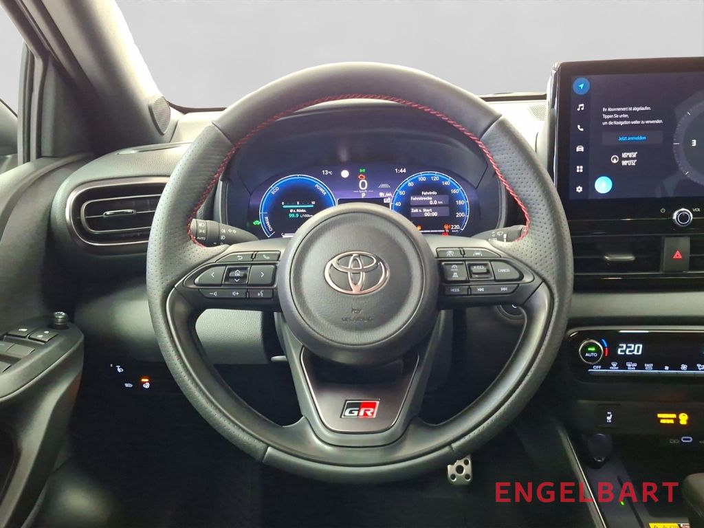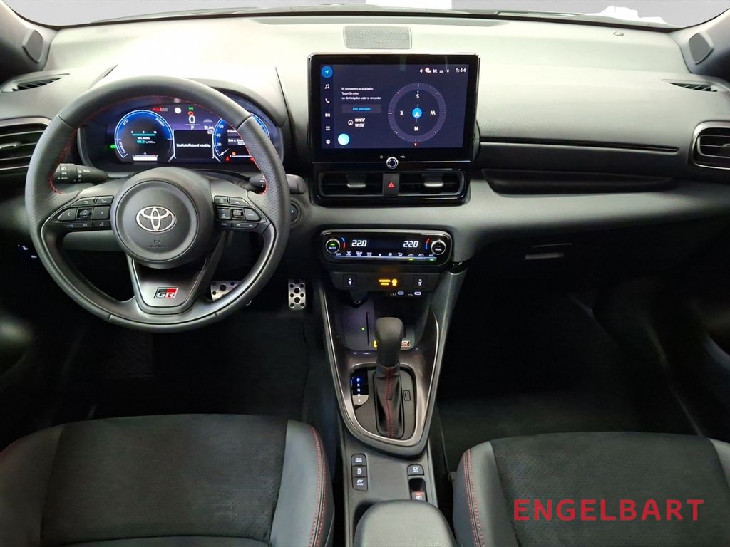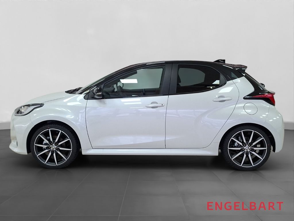 - Weiteres: Sportsitze, Reifendruck-Kontrollsystem, Rückfahrkamera, Schalt-/Wählhebelgriff Leder, Scheibenwischer mit Regensensor, Scheinwerfer LED, Reifen-Reparaturkit, Heckleuchten LED, Getriebe Automatik stufenlos - Multidrive ECVT, Innenraumfilter: Staub- und Pollenfilter mit Aktivkohlefilter, Schadstoffarm nach Abgasnorm Euro 6e, Multimedia Display (10,5 Zoll), Audiosystem: Multimedia Toyota Smart Connect, Hybrid 96 kW (Motor 1,5 Ltr. - 68 kW), Digitaler Fahrzeugschlüssel im Smartphone (Smart Key), Toyota Safety Sense, Zentralverriegelung / Startanlage Smart-Key, Entry & Drive, Airbag Fahrer-/Beifahrerseite, Anti-Blockier-System (ABS), Lenkrad mit Schaltwippen, Tagfahrlicht LED, Seitenairbag vorn, Start-Stop-Knopf, Außenspiegel elektr. verstell- und heizbar, Wegfahrsperre, USB-Schnittstelle, Gepäckraumabdeckung / Rollo, Lenksäule (Lenkrad) verstellbar, Rücksitz geteilt, Metallic-Lackierung, 2-Farben-Lackierung Metallic, Aktive Kopfstützen, aktiver Spurhalteassistent (Lenkunterstützung), Ambiente-Beleuchtung vorn (LED), Audiobedienung am Lenkrad, Auffahrwarnsystem (Forward Collision Warning, FCW), Außenspiegel elektr. anklappbar, Autom. Begleitfunktion der Beleuchtung (Follow me home), Autonome Notbremsfunktion (AEB), Beifahrerairbag abschaltbar, Berganfahrkontrolle (HAC), Blinkleuchte in Außenspiegel integriert, Blinkleuchten LED, Eco-Anzeige für verbrauchsoptimiertes Fahren, Elektr. Bremskraftverteilung, ESP mit Schlupfregelung (VSC mit TRC), Fahrassistenz-System: Nothalt-Assistent, Fahrassistenz-System: Notlenk-Assistent, Fensterheber elektrisch vorn und hinten, Fernlichtassistent (Abblendautomatik Fahrlicht, AHB), Freisprechanlage Bluetooth, Freisprechanlage mit Sprachsteuerung, Gepäckraummatte Kunststoff, Geschwindigkeits-Begrenzeranlage, Gurtwarner hinten, Innenspiegel mit Abblendautomatik, Isofix-Aufnahmen für Kindersitz, Klimaautomatik 2-Zonen, Kreuzungs-Assistent, Kühlergrill unten / oben Pianolack, Leseleuchte, Müdigkeitserkennungs-Sensor, Nebelscheinwerfer LED, Parkbremse elektrisch (EPB), Polster: Alcantara, Pre-Collision-System (PCS), Protection-Paket, Rücksitz klappbar, Seitenairbag vorn und hinten, Servolenkung elektrisch, Sicherheitssystem Toyota Connect mit automatischem Notruf (eCall), Sitzheizung vorn, Sitzhöhenverstellung Fahrersitz, Smartphone-Integration x-connect (Apple CarPlay und Android Auto), Sport/Lederlenkrad, Sport-Fahrwerk, Spurhalteassistent, Totwinkel-Assistent, Verglasung hinten abgedunkelt, Verkehrszeichenerkennung (RSA), Warnanlage für Sicherheitsgurte vorn
