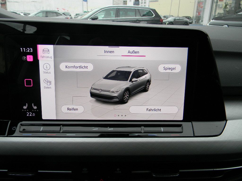 3-Punkt-Sicherheitsgurt hinten mitte, Airbag Fahrer-/Beifahrerseite, Beifahrerairbag abschaltbar, Ambiente-Beleuchtung (10 Farben), Antennen-Diversity, Ausstattung Life, Automatische Fahrlichtschaltung (ALS) mit Leaving Home / Coming-Home-Lichtfunktion, Außenspiegel elektr. verstell- und heizbar, mit Memory, Außenspiegel mit Umfeldleuchte und Projektionsfunktion, Außenspiegel Wagenfarbe, Bremsassistent, Dachhimmel Stoff, grau, Dachreling, Dachspoiler, Digital Cockpit (Instrumentenanzeige digital), Doppeltonhorn, Einparkhilfe vorn und hinten, Elektron. Differentialsperre (XDS), Elektron. Stabilitäts-Programm (ESP) mit Bremskraftverstärker elektro-mechanisch, Fahrassistenz-System: Abbiegebremsfunktion und Ausweichunterstützung, Fahrassistenz-System: Müdigkeitserkennung, Fahrassistenz-System: Spurhalteassistent (Lane Assist), Fahrassistenz-System: Umfeldbeobachtungssystem (Front assist) mit City-Notbremsfunktion, Fensterheber elektrisch vorn und hinten, Frontscheibe Verbundglas getönt, Fußgänger-Schutzsystem (passiv), Geschwindigkeits-Begrenzeranlage in Verbindung mit Onlinedienste, Heckleuchten LED, Innenausstattung: Dekoreinlagen Nature Cross Brushed, Innenraumfilter: Aktiv Kombifilter, Innenspiegel abblendbar, Isofix-Aufnahmen für Kindersitz an Beifahrersitz und Rücksitz (inkl. i-Size-Kindersitze), Karosserie: 5-türig, Keyless-Start, Klimaanlage Climatronic 1-Zonen, Kopfstützen hinten (3-fach), Lendenwirbelstützen vorn, Leseleuchten vorn und hinten LED, Leuchtweitenregelung automatisch, LM-Felgen, Mild-Hybrid 96 kW (Motor 1,5 Ltr. - 96 kW eTSI ACT), Mittelarmlehne vorn höhen-/längsverstellbar, Mobile Online Dienste Vorbereitung We Connect und We Connect Plus, Multimedia-Schnittstelle 2 x USB (Typ C) vorn und 2 x USB-Ladeanschluß (Typ C) Mittelkonsole hinten (45 W), Nebelschlussleuchte, Nichtraucher-Paket, Notrufsystem, Otto-Partikelfilter (OPF), Parkbremse elektrisch mit Auto-Hold-Funktion, Radioempfang digital (DAB+), Reifen-Reparaturkit (Tire Mobility Set), Reifenkontroll-Anzeige, Rücksitzlehne geteilt mit Mittelarmlehne, Schadstoffarm nach Abgasnorm Euro 6d, Scheibenwischer mit Intervallschaltung, Seitenairbag vorn mit Center-Airbag, Kopf-Airbag-Einheit vorn und hinten, Service-System: Intelligente Fahrzeugvernetzung (Car2X), Servolenkung elektro-mechanisch und geschwindigkeitsabhängig, Sitzbezug / Polsterung: Stoff Maze, Sitze vorn höhenverstellbar, Sitze: Komfortsitze vorn, Sonnenblenden mit Spiegel (beleuchtet), Start/Stop-Anlage, Steckdose 12V im Koffer-/Laderaum, Stoßfänger Wagenfarbe, Türgriffe außen Wagenfarbe, Türgriffschalen außen beleuchtet, Verbandkasten und Warndreieck, Warnanlage für Sicherheitsgurte vorn und hinten, Wärmeschutzverglasung grün getönt (seitlich / hinten)