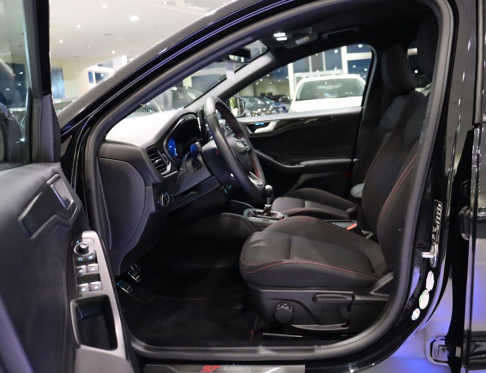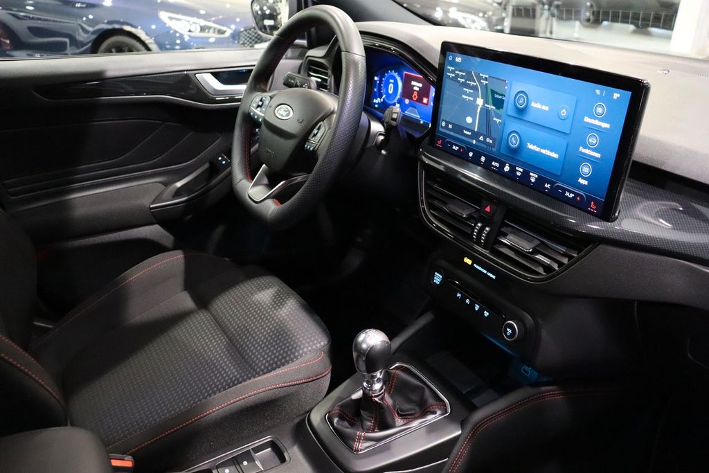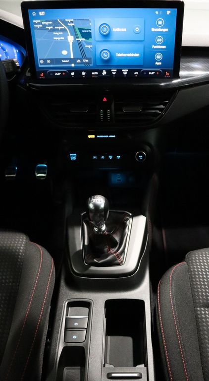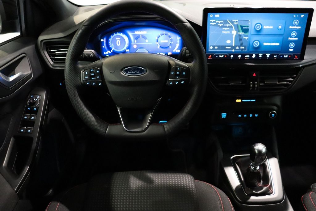 Airbag Beifahrerseite abschaltbar, Ambiente-Beleuchtung vorn (LED), Antischlupfregelung (ASR), Audio-Navigationssystem Ford SD (mit Ford SYNC 4 und Touchscreen-Farbdisplay), Außenspiegel elektr. anklappbar, Außenspiegel elektr. verstell- und heizbar, Blinkleuchte in Außenspiegel integriert, Bodenleuchte im Außenspiegel, Body-Styling-Paket, Bord-/Verbrauchscomputer, Dachhimmel Stoff, dunkel, Dachreling schwarz, Dimmer Instrumentenbeleuchtung, Doppelendrohr Auspuffanlage, Durchladeeinrichtung (Mittelarmlehne hinten), Elektr. Bremskraftverteilung (EBD), Fahrassistenz-System: Berganfahr-Assistent (Hill-Holder), Fahrassistenz-System: Notbrems-Assistent, Fahrassistenz-System: Post-Collision-System, Fahrassistenz-System: Pre-Collision-System, Fahrassistenz-System: Spurhalteassistent, Farbdisplay (8 Zoll), Farbdisplay für Bordcomputer, Fensterheber elektrisch vorn + hinten mit Komfortschließung, FordPass Connect inkl. eCall, Fußmatten Velours mit Ziernähte, Gepäckraumabdeckung / Rollo, Getriebe 6-Gang - Typ: 6MX65, Induktionsladeschale für mobile Endgeräte, Innenraumfilter: Staub- und Pollenfilter, Innenspiegel mit Abblendautomatik, Intelligent Protection System (IPS), Intelligenter Geschwindigkeits-Begrenzer, Isofix-Aufnahmen für Kindersitz, Karosserie: 5-türig, Kindersicherung elektrisch, Klimaautomatik 2-Zonen, Kofferraumdeckel / Heckklappe elektr. betätigt (Öffnung, sensorgesteuert), Kombiinstrument Digitalanzeige 12,3 Zoll, Kopfstützen hinten mechan. verstellbar (3 Stück), Kopfstützen vorn 4-fach verstellbar, Lenkrad (Sport/Leder, ST), Lenksäule (Lenkrad) höhen-/längsverstellbar, Mild-Hybrid 114 kW (Motor - 114 kW EcoBoost), Mittelarmlehne hinten, Mittelkonsole Premium, Modellpflege, My Key (2. Fahrzeugschlüssel programmierbar), Nebelscheinwerfer LED, Parkbremse elektrisch mit Auto-Hold-Funktion, Parkpilotsystem vorn und hinten, Reifendruck-Kontrollsystem, Rücksitzlehne geteilt/klappbar (60:40), Schadstoffarm nach Abgasnorm Euro 6d, Schalt-/Wählhebelgriff Aluminium, Schaltpunktanzeige, Scheinwerfer mit abgedunkelten Hintergrund, Scheinwerfer mit Ausschaltverzögerung, Scheinwerfer-Assistent mit Tag-/Nachtsensor, Sitz vorn links höhenverstellbar, Sitz vorn rechts höhenverstellbar, Sonnenblende links mit Spiegel (beleuchtet), Sonnenblende rechts mit Spiegel (beleuchtet), Sport-Fahrwerk, Sportsitze vorn, Start/Stop-Anlage, Steckdose (12V-Anschluß) im Koffer-/Laderaum, Verglasung getönt, Verglasung hinten abgedunkelt (Privacy Glass), Warnanlage für Sicherheitsgurte hinten, Warnanlage für Sicherheitsgurte vorn........................................