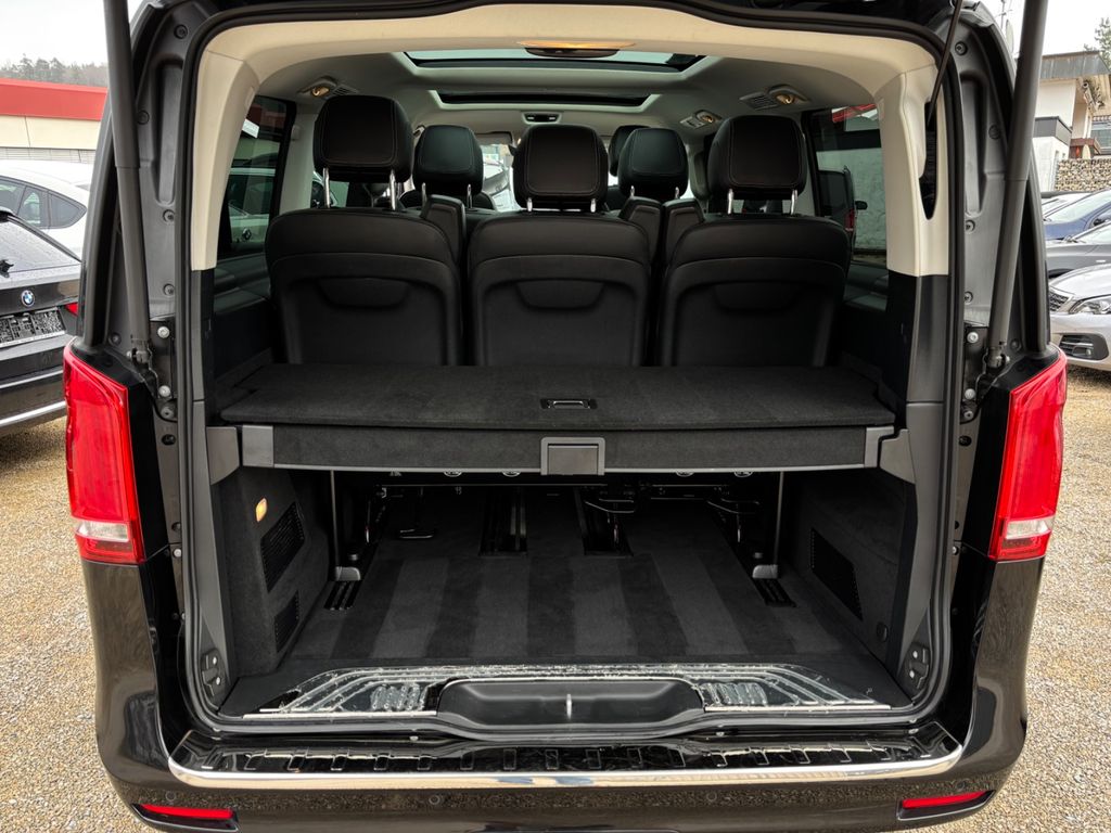 Ablagenetz an Vordersitzlehne links, Adaptives Bremslicht, Airbag Beifahrerseite, Airbag Fahrerseite, Anhängerkupplung: Elektrik für Anhängersteckdose, Anzeige für Waschwasserstand, Armlehnen Fahrgastraum, Außenspiegel asphärisch, beide, Außenspiegel elektr. verstell- und heizbar, Außenspiegel mit integrierter Blinkleuchte, Außentemperaturanzeige, Beleuchtung im Haltegriff Fond mit Lesespot, BlueEfficiency-Paket, Bodenbelag: Teppich im Fahrerraum, Bodenbelag: Teppich im Lade-/Fahrgastraum, Bremsassistent, Bremssystem mit ABS+ASR, DAB-Tuner (Radioempfang digital), Dachverkleidung / Innenhimmel Stoff grau, Design- und Ausstattungslinie Avantgarde Edition, Direktlenkung mit variabler Lenkkraft-Unterstützung, Einschaltautomatik für Fahrlicht, Einstiegsgriff hinten, Einstiegsleisten mit Schriftzug Mercedes-Benz (beleuchtet), Einstiegsleuchten, Fahrassistenz-Paket, Fenster für hintere Türen / Heckklappe mit Wisch-/Waschanlage, Fenster im Lade-/FG-Raum: - feststehend, vorn links, Fenster im Lade-/FG-Raum: - feststehend, vorn rechts, Feststellbremse elektrisch, Feststeller Schiebetür (Aktiv), Getriebe Automatik GTronic - (9-Stufen), Gurtstraffer, Haltegriffe im Fond, Handschuhfach abschließbar, Harnstofftank (AdBlue): 24 Ltr., Heckscheibe aufstellbar, Karosserie/Aufbau: Bus, Karosserie/Aufbau: lang, Kindersicherung, Klimaautomatik Fond (Tempmatik), Kombiinstrument mit Farbdisplay, Komfort-Klimaautomatik Thermotronik, Komfortbeleuchtung im Fahrgast-/Laderaum, Kommunikationsmodul Mercedes me connect (Internetbasierende Dienste), Kopf-Airbag-System (Windowbag), Kopf-Schulter-Airbag (Thoraxbag) Fahrer-/Beifahrerseite, Lenkrad (Lenksäule mech. verstellbar), Lenkrad mit Multifunktion inkl. Reiserechner, Mercedes-Benz Notrufsystem, Metallic-Lackierung, Mittelkonsole vorn mit Rollo / Ablage, Modellpflege, Motor 2,0 Ltr. - 174 kW CDI KAT, Multimediasystem MBUX (Touchscreen 10,25"), Navigationssystem für Multimediasystem MBUX, PKW-Zulassung, PTC Heater, Radstand 3200 mm, Reifendruck-Kontrollsystem, Rückspiegel innen, Schadstoffarm nach Abgasnorm Euro 6d, Scheibenwischer mit Regensensor, Schiebetür Lade-/Fahrgastraum links, Sicherheitsgurt-System mit Warnanlage (Beifahrerseite), Sitzausstattung: Isofix-Kindersitz-System, Sitzausstattung: Schnellverriegelung für Sitzschienen-System, Sitze im Fahrerhaus: Beifahrersitz Komfort, Sitze im Fahrerhaus: Fahrersitz heizbar, Sitze im Fahrerhaus: Fahrersitz Komfort, Sitze im Lade-/FG-Raum: 1.Reihe, 1 Einzelsitz links, Sitze im Lade-/FG-Raum: 1.Reihe, 1 Einzelsitz rechts, Sonnenblenden mit Spiegel (beleuchtet), Spiegel-Paket, Steckdose (12V-Anschluß) im Lade-/Fahrgastraum, Steckdosen (12V-Anschluß) im Lade-/Fahrgastraum, 2-fach, Warmluftkanal zum Lade-/Fahrgastraum, Wartungsintervall-Anzeige Assyst, Wärmeschutzverglasung.
