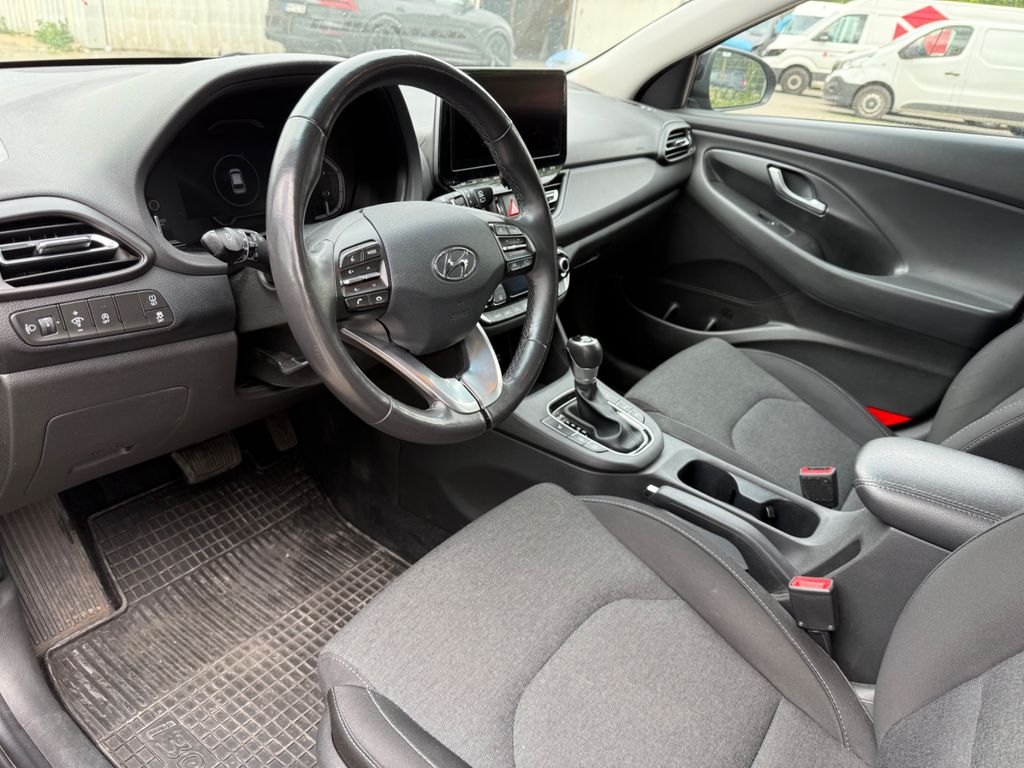 6 Lautsprecher, Ablagetasche an Vordersitzlehnen, Airbag Beifahrerseite, Airbag Beifahrerseite abschaltbar, Airbag Fahrerseite, Audio-Navigationssystem, Audiosystem: Radio RDS, Außenspiegel elektr. verstell- und heizbar, beide, Außenspiegel schwarz glänzend, Blinkleuchte in Außenspiegel integriert, Bremsassistent, Dachspoiler, Einschaltautomatik für Fahrlicht / Lichtsensor, Elektr. Bremskraftverteilung, Elektron. Stabilitätskontrolle (ESC) mit Bremsassistent, Fahrassistenz-System: aktiver Spurhalteassistent (LKAS, Lane Keep Assist System), Fahrassistenz-System: Aufmerksamkeits-Assistent, Fahrassistenz-System: Autonome Notbremsfunktion inkl. Frontkollisionswarnung (FCA), Fahrassistenz-System: Berganfahrhilfe, Fahrassistenz-System: Einparkhilfe vorn und hinten, Fahrassistenz-System: Fahrprofilauswahl (Drive Mode), Fahrassistenz-System: Fernlichtassistent, Fahrassistenz-System: Sicherheitssystem mit automatischem Notruf (ERA GLONASS / eCall), Fahrassistenz-System: Totwinkel-Assistent, Fahrer-Informations-System (Display 7,0 Zoll), Fensterheber elektrisch hinten, Fensterheber elektrisch vorn und hinten, mit Auf-/Ab-Automatik, Freisprecheinrichtung Bluetooth, Frontscheibe mit Bandfilter oben, Frontscheibe wärmedämmend, Funktions-Paket, Gegenlenkunterstützung (Vehicle Stability Management, VSM), Gepäck-/Laderaumleuchte, Gepäckraumabdeckung / Rollo, Getriebe 7-Gang - Doppelkupplungsgetriebe DCT, Getränkehalter hinten, Getränkehalter vorn, Gurtstraffer, Heckscheibe heizbar, Induktionsladeschale für Smartphone, Innenspiegel mit Abblendautomatik, Isofix-Aufnahmen für Kindersitz, Karosserie: 5-türig, Klimaautomatik 2-Zonen, Kombi-Paket, Kopf-Airbag-System, Kopfstützen hinten verstellbar, Kühlergrill mit Chromrand, Kühlergrill schwarz (glanzlackiert), Lendenwirbelstütze Sitz vorn links, elektr. verstellbar, Lenkrad heizbar, Leseleuchte, Lifetime MapCare (Internetbasierende Dienste), LM-Felgen, Mittelarmlehne hinten mit Getränkehalter, Modellpflege, Motor 1,6 Ltr. - 85 kW CRDi KAT (1598 ccm), Motorhaubenisolierung, Radioempfang digital (DAB+), Reifen-Reparaturkit, Reifendruck-Kontrollsystem, Rücksitzlehne geteilt/klappbar, Schadstoffarm nach Abgasnorm Euro 6d-TEMP, Schalt-/Wählhebelgriff Leder, Scheibenbeschlagerkennung / Regelung, Scheinwerfer LED, Seitenairbag vorn, Seitenscheiben ab B-Säule abgedunkelt, Service-System: Remote Services (Blue Link), Sicherheitsgurte vorn höhenverstellbar, Sitz vorn links höhenverstellbar, Sitz vorn rechts höhenverstellbar, Sitzbezug / Polsterung: Stoff, Sonnenblenden mit Spiegel (beleuchtet), Start/Stop-Anlage, Steckdose (12V-Anschluß) im Koffer-/Laderaum, Türgriffe außen Wagenfarbe, Türgriffe innen verchromt, USB-Anschluss + AUX-IN-Anschluss, Verglasung getönt, Warnanlage für Sicherheitsgurte, Fahrer-/Beifahrerseite