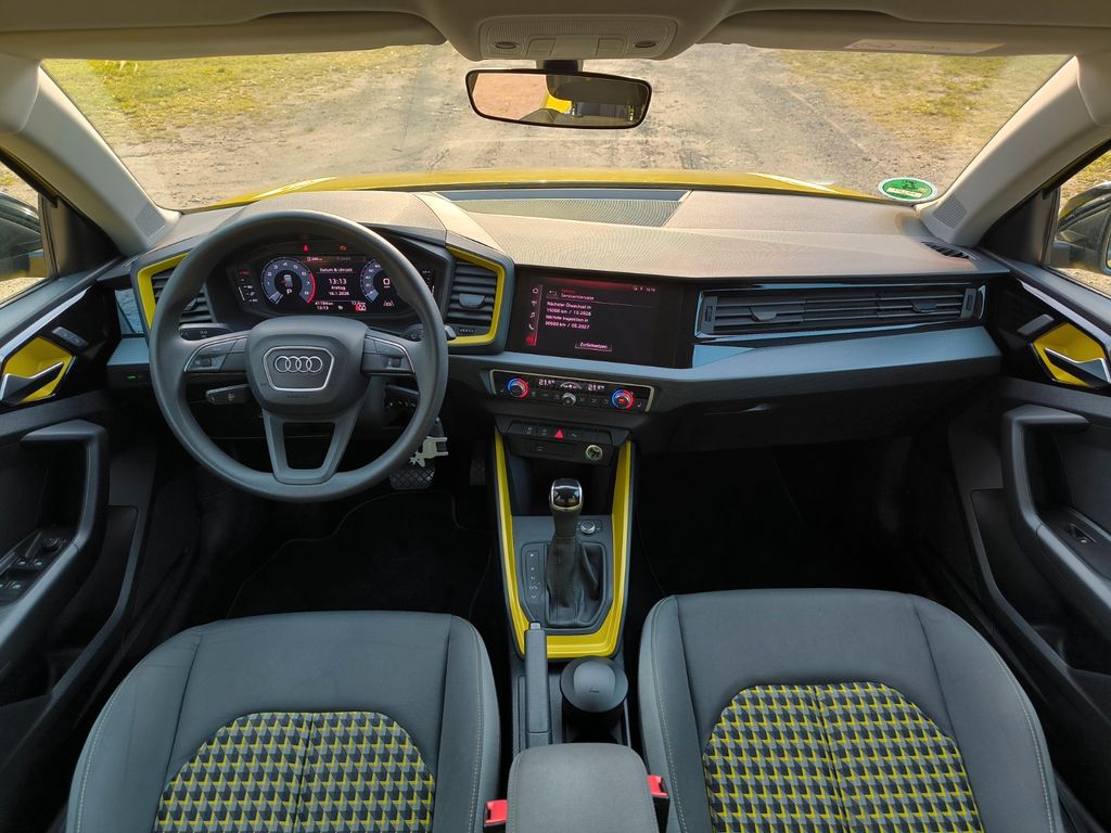 Zum Verkauf steht dieser (für mich Wunderschöne) Audi A1 / 30 TFSI 85kW (116PS) / 7-Gang S tronic / Baujahr 11.2019 / Pythongelb Metallic / Details in Mythosschwarz Metallic / Sportsitze mit Sitzheizung (Sitzheizung vorne) gelb-granitgrau-gelb / Einparkhilfe plus (Parksensoren vorne und hinten) / 2-Zonen Komfortklimaautomatic / Mittelarmlehne vorne / MMI Radio plus / 8-Fach bereift (Sommerreifen auf Alufelge ca. 5mm Profiltiefe (Reifen Goodyear Eagle 215/45 R17) / Winterreifen auf Stahlfelgen mit Radkappen ca. 2mm müssen erneuert werden) / Scheiben hinten abgedunkelt / Audi pre sence Front /einstellb. Geschwindigkeitsbegrenzer / Spurverlassenswarnung / Audi Code A643LG2PDas Auto wurde hauptsächlich von meiner Frau gefahren und als Neuwagen nach ihren Wünschen konfiguriert. Gebrauchsspuren sind vorhanden und auf den Bildern mit den Anmerkungen einzusehen:
