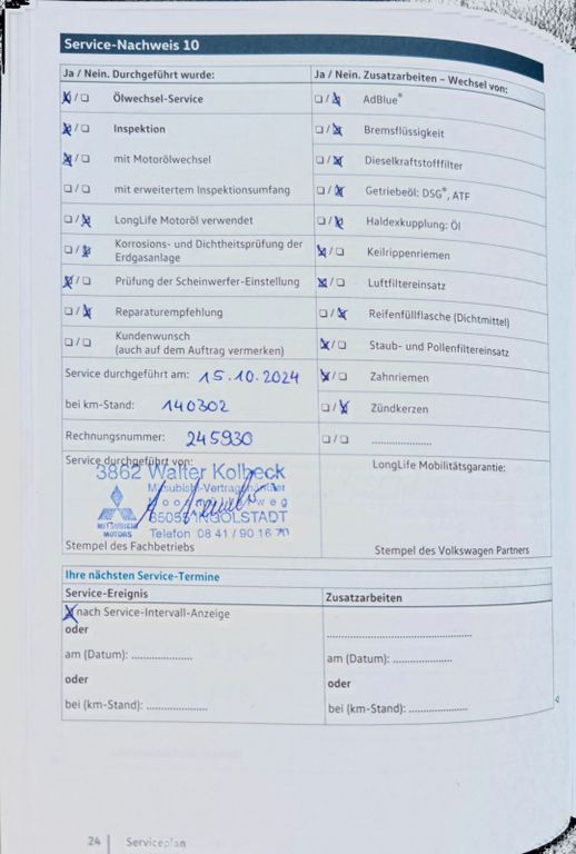 - Scheckheft gepflegt