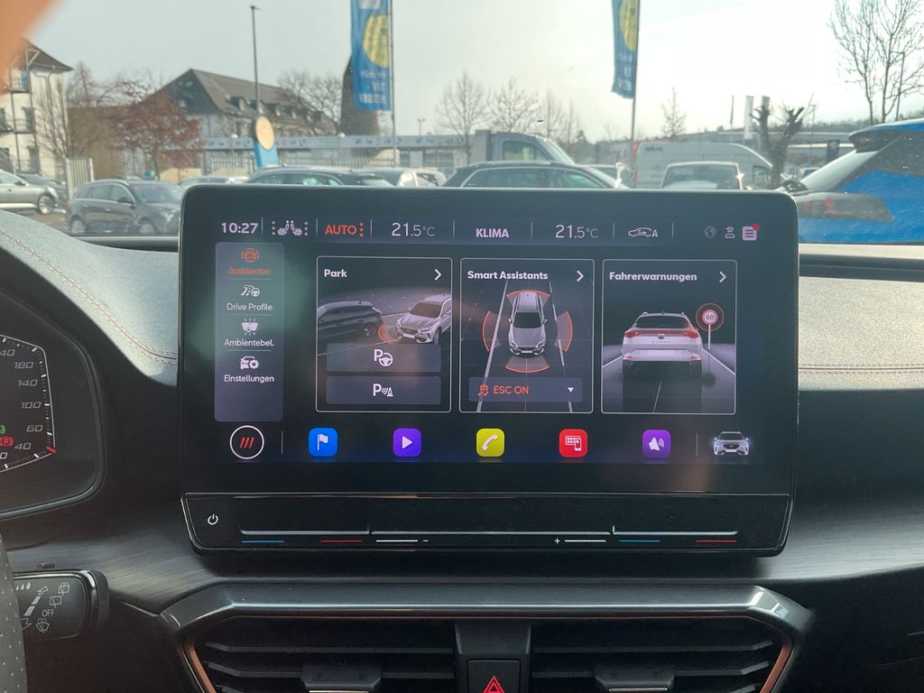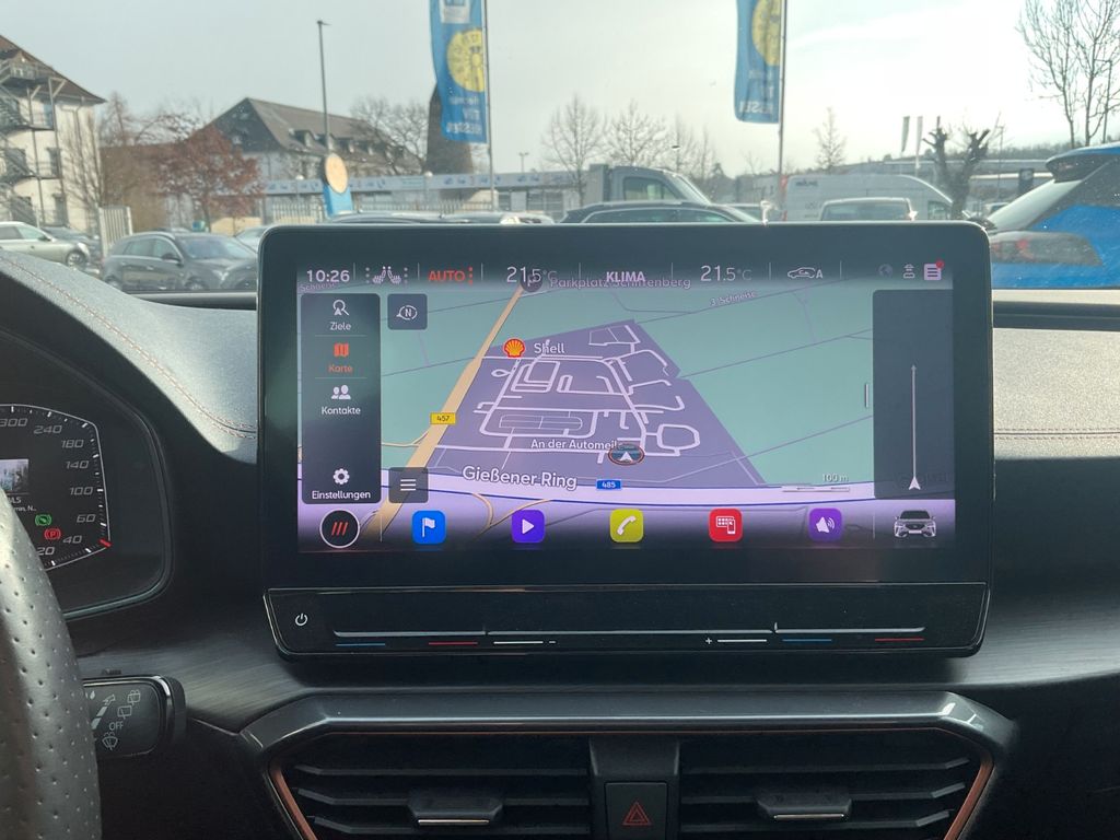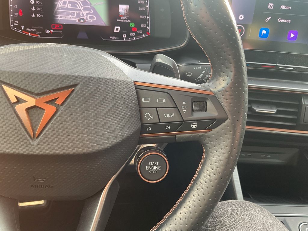 Airbag Beifahrerseite abschaltbar, Airbag Fahrer-/Beifahrerseite, Ambiente-Beleuchtung Smart Ambient Light, Antriebs-Schlupfregelung (ASR), Audio-Navigationssystem mit Touchscreen Farbbildschirm, Blinkleuchten LED in Außenspiegel integriert, Bluetooth-Schnittstelle mit Freisprecheinrichtung integriert, Dachreling schwarz, hochglänzend, Doppeltonhorn, Einstiegsleisten (Aluminium) vorn, beleuchtet, Elektron. Differentialsperre (XDS), Fahrassistenz-Paket XL, Fahrassistenz-System: Adaptive Fahrwerksregelung (DCC), Fahrassistenz-System: Fahrprofilauswahl (CUPRA Drive Profile), Fahrassistenz-System: Parklenkassistent mit Einparkhilfe vorn und hinten, Fensterheber elektrisch vorn + hinten mit Komfortschaltung, Fensterzierleisten schwarz hochglänzend, Gepäckraumabdeckung / Rollo, Heckleuchten Voll-LED mit dynamischem Lichtband (Infinite Light), Isofix-Aufnahmen für Kindersitz an Rücksitz, Karosserie: 5-türig, Klimaanlage Climatronic 3-Zonen, Kombiinstrument digital (virtual cockpit), Kopf-Airbag-System, Laderaumboden variabel und herausnehmbar, Licht- und Sicht-Paket, LM-Felgen, Mittelarmlehne hinten, Mittelkonsole vorn mit Mittelarmlehne, Becherhalter, Ablagebox und Luftausströmer hinten, Motor 2,0 Ltr. - 228 kW 16V TSI, Notrufsystem, Otto-Partikelfilter (OPF), Parkbremse elektrisch, Radioempfang digital (DAB+), Radstand 2680 mm, Reserverad als Notrad, Rückfahrkamera, Rücksitzlehne geteilt/klappbar (1/3-2/3), Rücksitzlehnen umklappbar mit Fernentriegelung im Kofferraum, Schadstoffarm nach Abgasnorm Euro 6d, Seitenairbag, Seitenairbag vorn mitte (Central Airbag), Seitenscheiben hinten und Heckscheibe abgedunkelt, Sitz vorn links höhenverstellbar, Sitz vorn rechts höhenverstellbar, Sonnenblende links mit Spiegel (beleuchtet), Sonnenblende rechts mit Spiegel (beleuchtet), Sport-Schalensitze vorn mit integrierten Kopfstützen, Start/Stop-Anlage, Steckdose (12V-Anschluß) vorn, Steckdose 230V im Gepäckraum, USB-Ladeanschlüsse (2-fach, Typ C) für 2.Sitzreihe, USB-Schnittstelle vorn (2-fach, Typ C), Verzurrösen Koffer-/Laderaum, Warnanlage für Sicherheitsgurt-System, Wärmeschutzverglasung