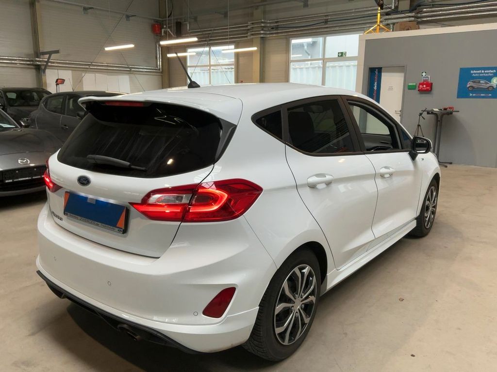Airbag Beifahrerseite abschaltbar, Außenspiegel elektr. verstell- und heizbar, Außenspiegel Wagenfarbe, Blinkleuchte in Außenspiegel integriert, Body-Styling-Paket, Bord-/Verbrauchscomputer, Brillenfach in Dachhimmel / Dachkonsole integriert, Dachhimmel Stoff, dunkel, Einstiegschienen mit Modell-Schriftzug, Elektr. Bremskraftverteilung (EBD), Energierückgewinnung (Smart Regenerative Charging), Fahrassistenz-System: Berganfahr-Assistent (Hill-Holder), Fahrassistenz-System: Notbrems-Assistent, Fahrassistenz-System: Spurhalteassistent, Fußmatten Velours - vorn, Getriebe 6-Gang - Typ: 6MX65, Handbremshebelgriff Leder, Innenraumfilter: Staub- und Pollenfilter, Intelligent Protection System (IPS), Isofix-Aufnahmen für Kindersitz, Karosserie: 5-türig, Kopfstützen hinten mechan. verstellbar (3 Stück), Kühlergrill im Sport-Design, Lendenwirbelstütze Sitz vorn links, Lenksäule (Lenkrad) höhen-/längsverstellbar, Leseleuchte vorn, Motor 1,0 Ltr. - 103 kW EcoBoost KAT, My Key (2. Fahrzeugschlüssel programmierbar), Nebelscheinwerfer mit statischem Abbiegelicht, Otto-Partikelfilter (OPF), Pedale Aluminium, Reifen-Reparaturkit, Reifendruck-Kontrollsystem, Rücksitz geteilt, Rücksitzlehne klappbar, Schadstoffarm nach Abgasnorm Euro 6, Schadstoffarm nach Abgasnorm Euro 6d-TEMP, Scheinwerfer mit Ausschaltverzögerung, Scheinwerfer-Assistent mit Tag-/Nachtsensor, Sitz vorn links höhenverstellbar, Sonnenblende links mit Spiegel, Sonnenblende rechts mit Spiegel, Sport-Fahrwerk, Sportsitze vorn, Türgriffe außen Wagenfarbe, Verglasung getönt, Warnanlage für Sicherheitsgurte hinten