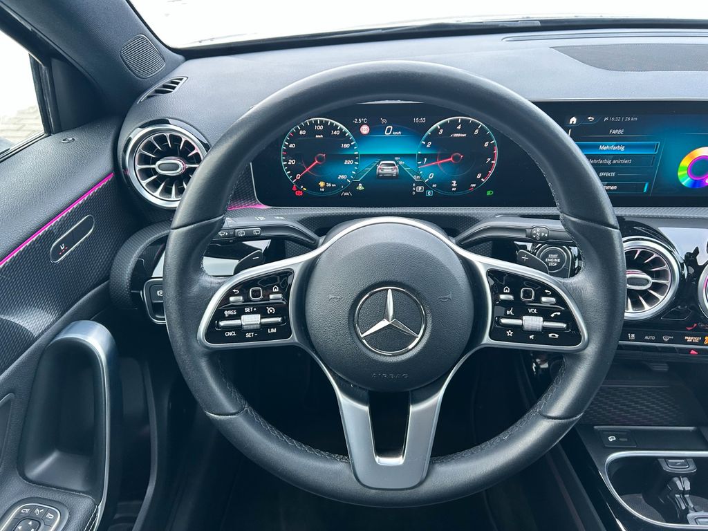 Dieser gepflegte Mercedes-Benz A 220 Limousine aus dem Jahr 2019 bietet ein umfassendes Ausstattungspaket für anspruchsvolle Fahrer. Der Allradantrieb sorgt für optimale Traktion bei allen Wetterbedingungen, während der 190 PS starke Benzinmotor mit Automatikgetriebe für souveräne Fahrleistungen sorgt. Das Fahrzeug präsentiert sich in elegantem Grau-Metallic mit schwarzem Lederinterieur und verfügt über ein Panorama-Glasdach für ein luftiges Raumgefühl. Die umfangreiche Sicherheitsausstattung umfasst zahlreiche Assistenzsysteme wie Spurhalteassistent, Kollisionsvermeidung und adaptiven Tempomat. Für Komfort sorgen die 2-Zonen-Klimaautomatik, beheizbare Sitze und das digitale Cockpit mit Touchscreen. Das Fahrzeug wurde scheckheftgepflegt und hat lediglich zwei Vorbesitzer.