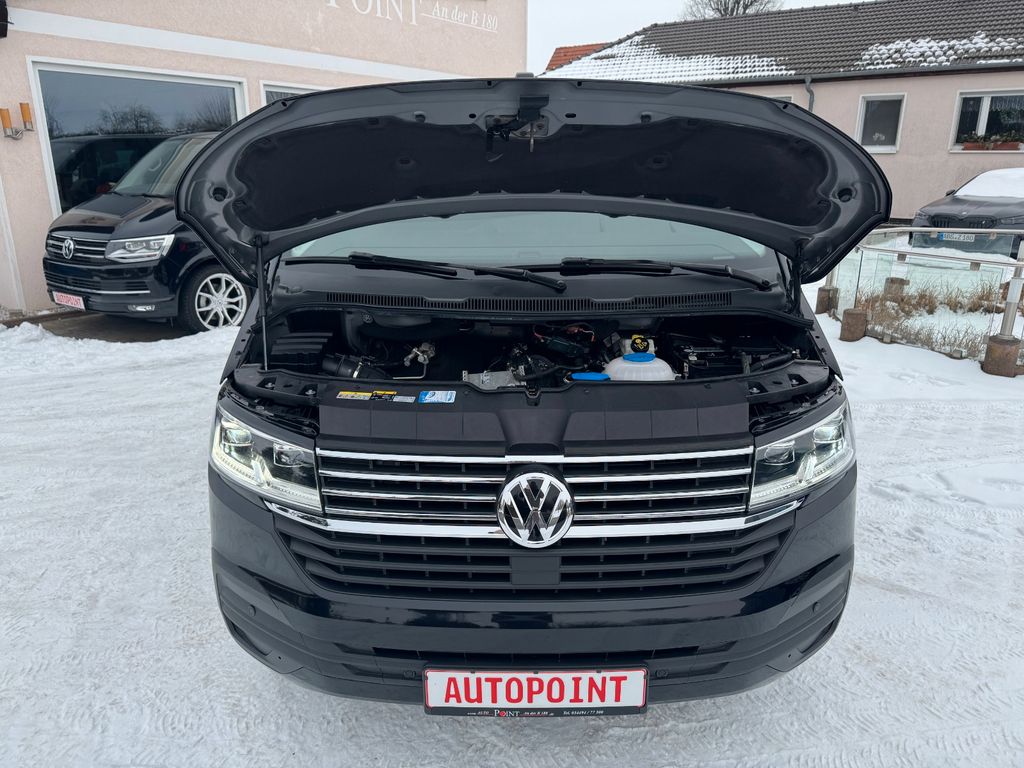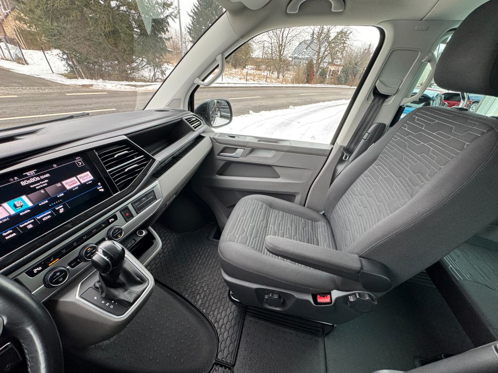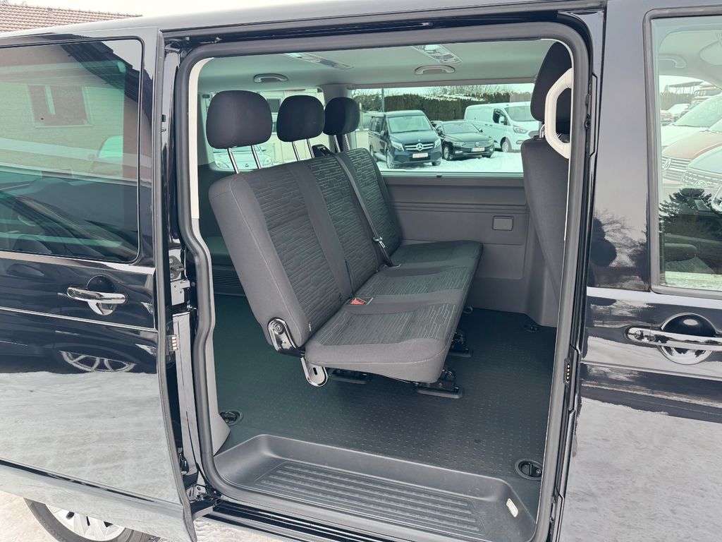 Sonderausstattung:Audio-Navigationssystem Discover Pro Streaming & Internet (Touchscreen, USB), Ausstattungs-Paket Licht + Sicht, Bodenbelag: Gummi (vorn und hinten), Fahrassistenz-System: Autom. Distanzregelung (ACC) und Umfeldbeobachtungssystem (Front Assist, bis 210 km/h), Fahrassistenz-System: Einparkhilfe vorn und hinten, Fahrassistenz-System: Spurwechselassistent (Side Assist / Blind Spot Sensor), Fahrwerk: Federung und Dämpfung verstärkt, Fzg. ohne Sitze im Lade-/FG-Raum 2.Reihe, Isofix-Aufnahmen für Kindersitz an Rücksitz, Klimaautomatik Climatronic (Fahrerhaus + Lade-/Fahrgastraum), Kraftstofftank: 80 Ltr., Lackierung: Perleffekt-Lackierung, LM-Felgen 6,5x16 (Clayton), Mobiltelefon Schnittstelle Comfort mit kabelloser Ladefunktion, Multifunktionsanzeige Premium (Farbdisplay), Notrufsystem, Rückfahrkamera, Scheibenwaschdüsen beheizt und Anzeige für Waschwasserstand, Scheinwerfer und Heckleuchten LED, Sitz-Paket: 5-Sitzer, 2-3-0 (2 Einzelsitze, 3er-Sitzbank), Sitze im Fahrerhaus: Fahrer- und Beifahrersitz heizbar, Verglasung hinten abgedunkelt, Zusatzheizung (Warmwasser) mit Standheizfunktion und Fernbedienung, Zuziehhilfe für Heckklappe, Zuziehhilfe Schiebetür rechts