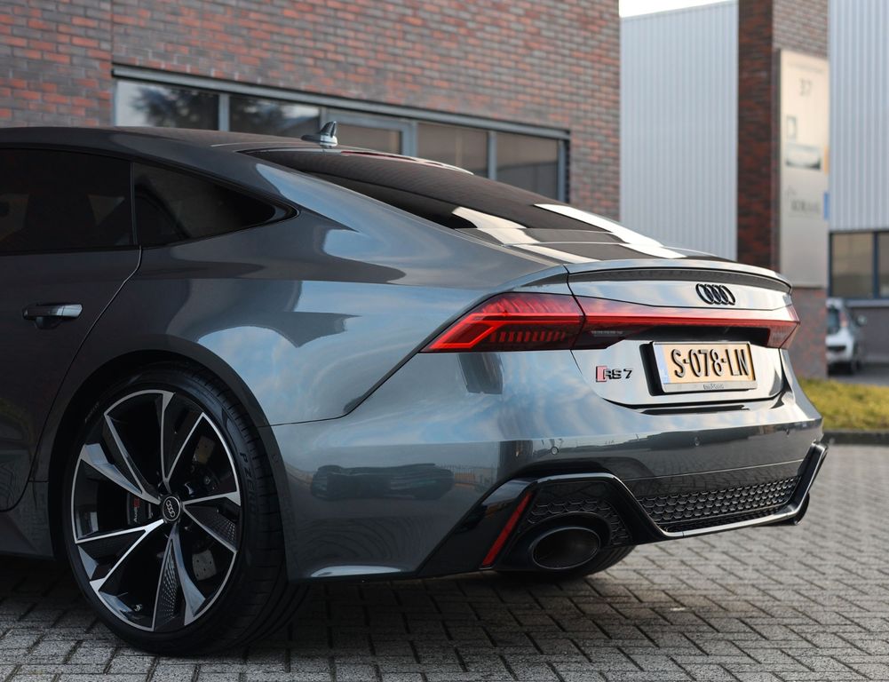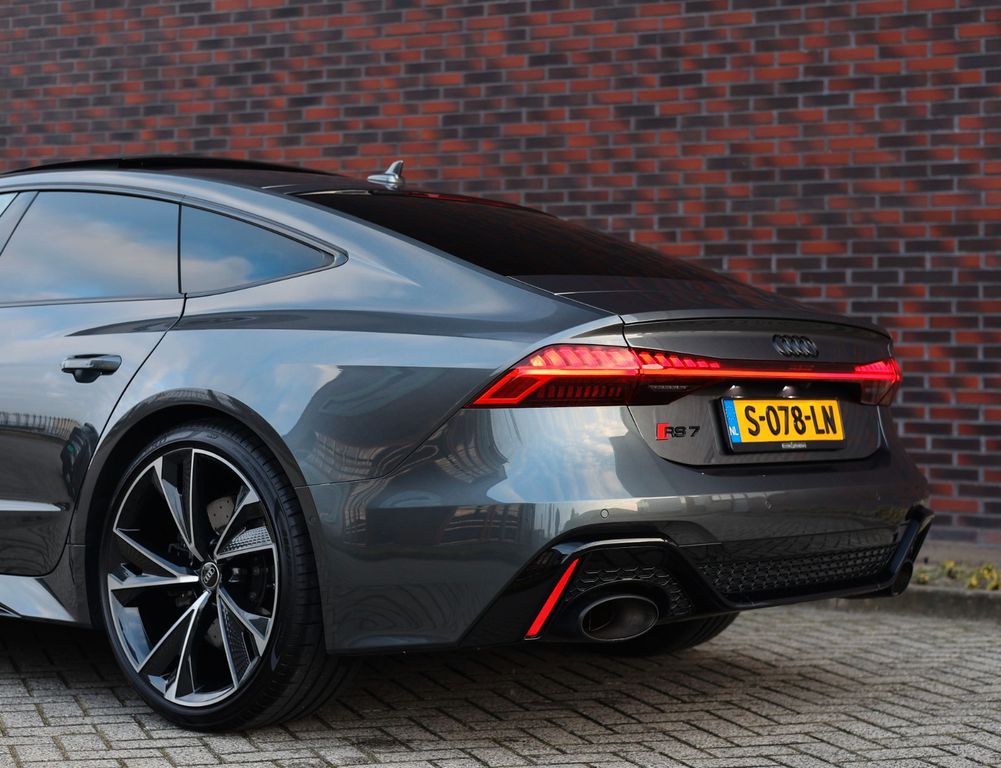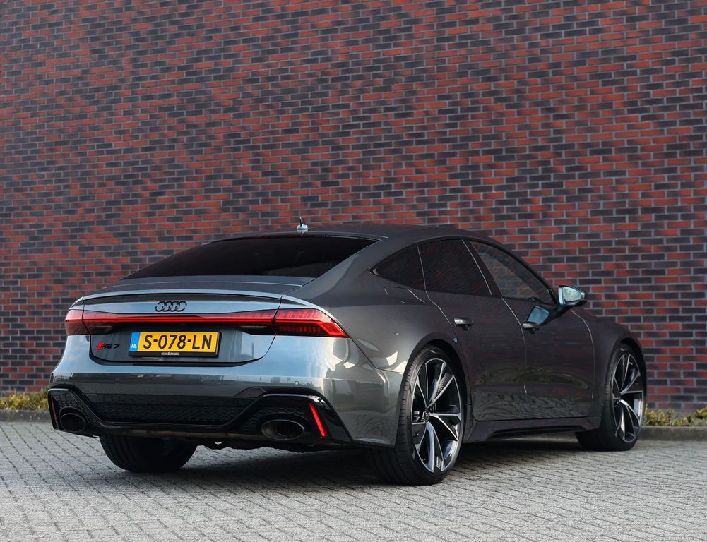 An Audi RS7 always turns heads, but this particular example truly stands out thanks to its black alloy wheels and ceramic braking system, giving it an especially bold and athletic appearance.