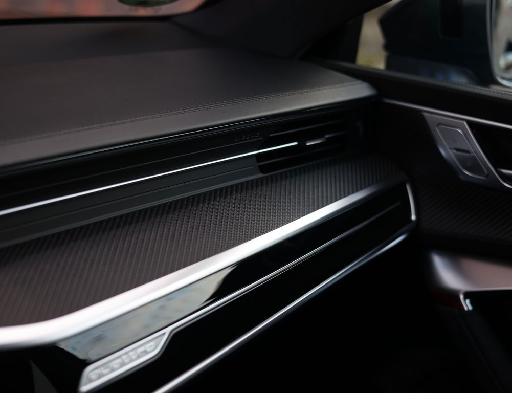 Assistenz-Paket Parken mit Remote Parklenkassistent, Assistenz-Paket Stadt, Assistenz-Paket Tour, Audi connect Schlüssel, Audi Ringe und Schriftzüge schwarz glänzend, Außenspiegel elektr. verstell-, heiz- und anklappbar, mit Abblendautomatik und Memory, Außenspiegel Wagenfarbe, Bluetooth-Freisprecheinrichtung mit Spracherkennung (Audi Phone Box), Fahrassistenz-System: Insassen-Schutzsystem (Audi pre sense Fond), Fondsitzanlage (3 Sitzplätze), Frontscheibe Klimakomfort / Akustikglas, heizbar, Head-up-Display, Höchstgeschwindigkeit 280 km/h, Innenausstattung: Dekoreinlagen Carbon Köper, Innenausstattung: Interieurelemente in Leder oben und unten, Ionisator zur Luftreinigung (Air-Quality-System), Keramik-Bremsanlage vorn und hinten, Bremssättel Anthrazit lackiert, Kombiinstrument digital (virtual cockpit plus) mit RS-Design, Komfortschlüssel mit sensorgesteuerter Heckklappenentriegelung und Diebstahl-Warnanlage inkl. (öffnen + schliessen), LM-Felgen 10,5x22 (5-V-Speichen, Struktur-Design, Anthrazit-Schwarz, glanzgedreht), LM-Felgen 10,5x22 (5-V-Speichen, Struktur-Design, schwarz glänzend, für Winterbereifung), Matrix-LED-Scheinwerfer mit Laserlicht, Panorama-Ausstelldach elektrisch, Perleffekt-Lackierung, Raucher-Paket, Sender für Garagentoröffner (integriert), Servoschliessung für Türen, Sitzbezug / Polsterung: Leder Valcona perforiert, Wabensteppung, belüftet), Sonnenschutzrollo an Heckscheibe, Sound-System Bang & Olufsen, Sport-Auspuffanlage, Sport-Fahrwerk RS plus mit Dämpferregelung, Standheizung, USB-Ladeanschlüsse (2-fach, Typ C) für Fondpassagiere, Verglasung hinten abgedunkelt (Privacyverglasung)