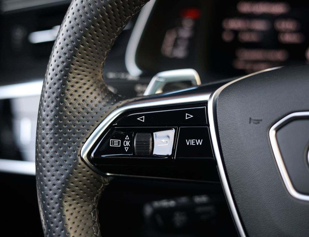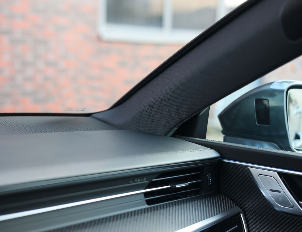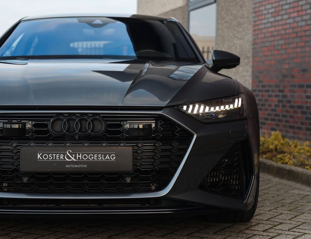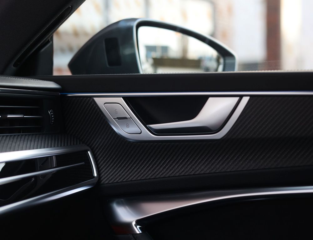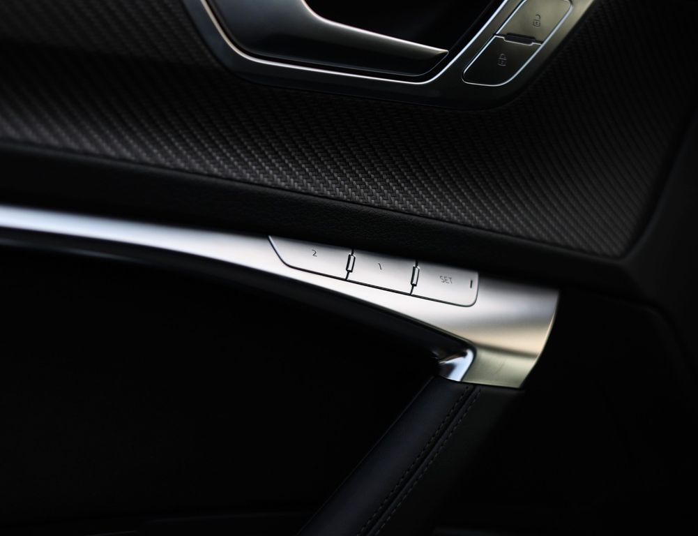 The black leather interior is equally impressive, featuring carbon trim inlays, a leather-wrapped dashboard and a panoramic glass roof. In addition, this RS7 distinguishes itself with an extensive list of options, including Soft-Close doors, Matrix LED headlights, a Bang & Olufsen sound system, 360-degree camera, head-up display and the “City” and “Tour” driver assistance packages.