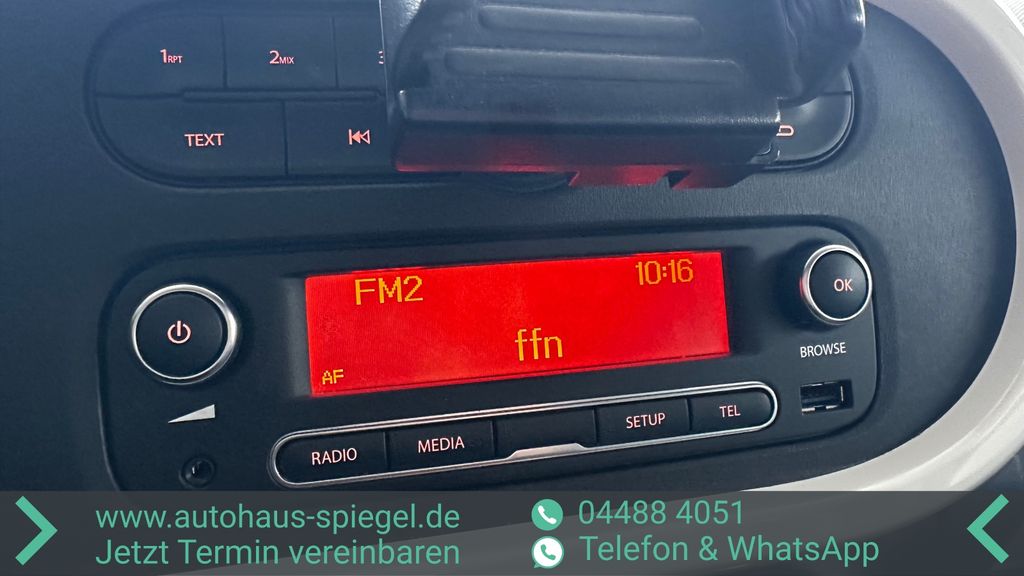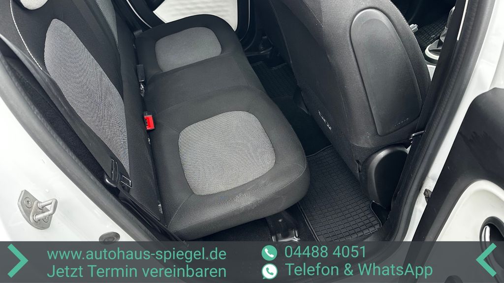 Dieser gepflegte Renault Twingo aus dem Jahr 2016 überzeugt als wendiger Stadtflitzer mit praktischer Raumnutzung. Der 999 ccm Benzinmotor mit 69 PS bietet eine sparsame und zuverlässige Fahrleistung, ideal für den urbanen Alltag. Die kompakten Abmessungen von 3595 mm Länge, 1647 mm Breite und 1557 mm Höhe machen ihn zum perfekten Begleiter in engen Stadtstraßen und beim Parken. Besonders praktisch: Der Twingo verfügt über einen Heckantrieb, was ihm ein agiles Fahrverhalten verleiht.Die weiße Metallic-Lackierung harmoniert perfekt mit dem grauen Stoffinterieur. Die manuelle Klimaanlage sorgt für angenehme Temperaturen, während elektrische Fensterheber den Komfort erhöhen. Sicherheit wird großgeschrieben mit Front- und Seitenairbags, ABS, ESP, Berganfahrhilfe und Reifendruckkontrolle. Das Fahrzeug ist scheckheftgepflegt und wurde von einem Nichtraucher gefahren. Die Allwetterreifen und das Reparaturkit bieten zusätzliche Sicherheit unterwegs.