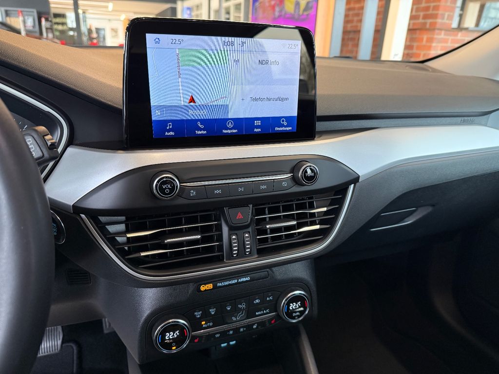 Airbag Beifahrerseite abschaltbar, Antischlupfregelung (ASR), Außenspiegel elektr. verstell- und heizbar, Blinkleuchte in Außenspiegel integriert, Bord-/Verbrauchscomputer, Chromeinfassung Seitenscheiben, Dachhimmel Stoff, Dachreling (Aluminium), Dachspoiler Wagenfarbe, Dimmer Instrumentenbeleuchtung, Elektr. Bremskraftverteilung (EBD), Fahrassistenz-System: Berganfahr-Assistent (Hill-Holder), Fahrassistenz-System: Notbrems-Assistent, Fahrassistenz-System: Post-Collision-System, Fahrassistenz-System: Pre-Collision-System, Fahrassistenz-System: Spurhalteassistent, Farbdisplay für Bordcomputer, Fensterheber elektrisch vorn + hinten mit Komfortschließung, FordPass Connect inkl. eCall, Fußmatten Teppich, Fußmatten Velours - vorn, Gepäckraumabdeckung / Rollo, Getriebe Automatik - Typ: 8F24 (8-Stufen), Innenraumfilter: Staub- und Pollenfilter, Intelligent Protection System (IPS), Intelligenter Geschwindigkeits-Begrenzer, Isofix-Aufnahmen für Kindersitz, Karosserie: 5-türig, Kopfstützen hinten mechan. verstellbar (3 Stück), Kopfstützen vorn 4-fach verstellbar, Laderaumboden verstellbar, Lenksäule (Lenkrad) höhen-/längsverstellbar, LM-Felgen, Mittelkonsole Premium, Modellpflege, Motor 1,0 Ltr. - 92 kW EcoBoost KAT, My Key (2. Fahrzeugschlüssel programmierbar), Nebelscheinwerfer LED, Otto-Partikelfilter (OPF), Parkbremse elektrisch mit Auto-Hold-Funktion, Parkpilotsystem vorn und hinten, Reifen-Reparaturkit, Reifendruck-Kontrollsystem, Rücksitzlehne geteilt/klappbar (60:40), Schalt-/Wählhebelgriff Leder, Schaltpunktanzeige, Scheinwerfer LED, Scheinwerfer-Assistent mit Tag-/Nachtsensor, Sitz vorn links höhenverstellbar, Sonnenblende links mit Spiegel, Sonnenblende rechts mit Spiegel, Sportsitze vorn, Start/Stop-Anlage, Steckdose (12V-Anschluß) im Koffer-/Laderaum, Verglasung getönt, Warnanlage für Sicherheitsgurte hinten, Warnanlage für Sicherheitsgurte vorn, Zylinderabschaltung