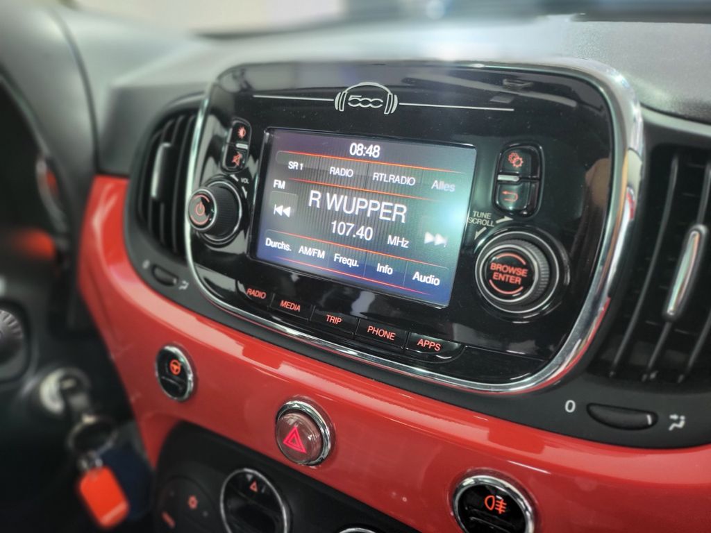 Airbag Fahrer-/Beifahrerseite, Autom. Begleitfunktion der Beleuchtung (Follow me home), Automatische Türverriegelung, Außenspiegel elektr. verstell- und heizbar, beide, Beifahrerairbag abschaltbar, Bordcomputer, Chrom-Paket, Elektr. Bremskraftverteilung, Fahrassistenz-System: Bremsassistent, Geschwindigkeits-Begrenzeranlage, Heckscheibe heizbar, Infotainment-System: UConnect (Touchscreen 5"), Innenausstattung: Dekoreinlagen Armaturenbrett, lackiert, Isofix-Aufnahmen für Kindersitz an Rücksitz, Karosserie: 3-türig, Knieairbag Fahrerseite, Kopf-Airbag-System vorn und hinten, Kopfstützen hinten, Kühlergrill verchromt, Lenksäule (Lenkrad) höhenverstellbar, LM-Felgen, Modellpflege, Motor 1,2 Ltr. - 51 kW KAT, Panoramadach (Glas), Positions-Memory für Beifahrersitz, Reifen-Reparaturkit, Reifendruck-Kontrollsystem, Rücksitz geteilt / klappbar, Schadstoffarm nach Abgasnorm Euro 6, Seitenairbag vorn, Steckdose (12V-Anschluß) im Armaturenbrett, Steckdose (12V-Anschluß) vorn, Stoßfänger Wagenfarbe, Tankdeckel abschließbar, Türgriffe außen verchromt, Wärmeschutzverglasung
