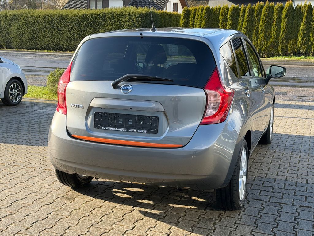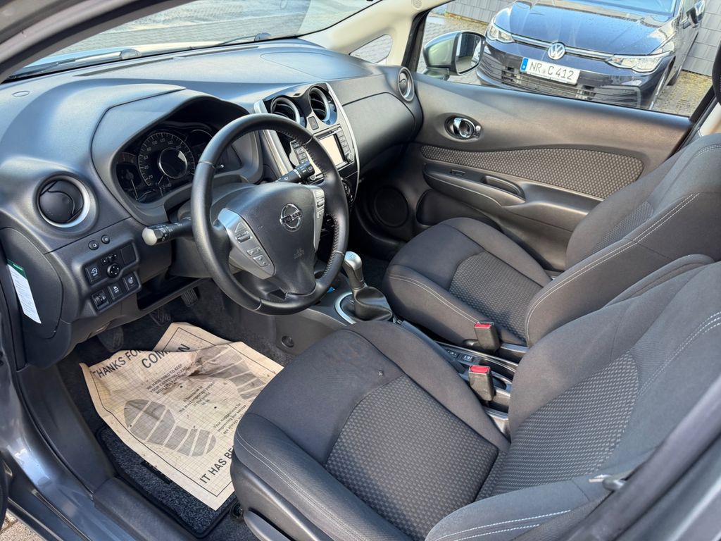 3. Bremsleuchte, Airbag Beifahrerseite abschaltbar, Airbag Fahrer-/Beifahrerseite und Seitenairbag vorn, Audio-/Radio-Fernbedienung am Lenkrad, Außenspiegel elektr. verstell- und heizbar, Außenspiegel Wagenfarbe, Außentemperaturanzeige, Blinkleuchte in Außenspiegel integriert, Bordcomputer, Bremsassistent (Nissan Brake-Assist), Comfort-Plus-Paket, Drehzahlmesser, Elektr. Bremskraftverteilung (EBD), Family-Paket, Fensterheber elektrisch hinten, Fernentriegelung Tankklappe, Frontscheibe Verbundglas, Gurtstraffer, Heckscheibe heizbar, Heckscheibenwischer, Innenspiegel abblendbar, Isofix-Aufnahmen für Kindersitz, Karosserie: 5-türig, Kindersicherung, Kofferraumabdeckung, Kopf-Airbag-System, Kopfstützen hinten, Kopfstützen vorn, Lenksäule (Lenkrad) höhenverstellbar, Leseleuchte vorn, LM-Felgen, Motor 1,2 Ltr. - 72 kW KAT, Multimedia-System Nissan Connect, Nebelschlussleuchte, Reifen-Reparaturset, Reifendruck-Kontrollsystem, Rücksitz geteilt/klappbar, Schadstoffarm nach Abgasnorm Euro 6, Schalt-/Wählhebelgriff Leder, Scheibenwischer mit Intervallschaltung, Sitz vorn links höhenverstellbar, Sitzbezug / Polsterung: Stoff, Sonnenblenden mit Spiegel, Start/Stop-Anlage, Steckdose (12V-Anschluß) in Mittelkonsole, Stoßfänger Wagenfarbe, Türgriffe innen verchromt, Verglasung hinten abgedunkelt