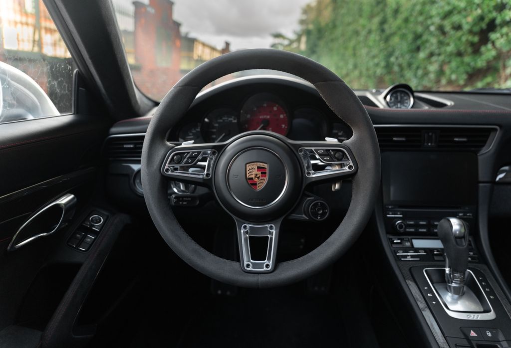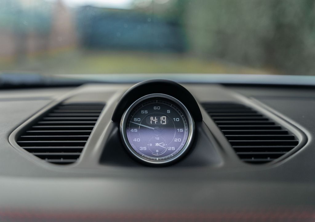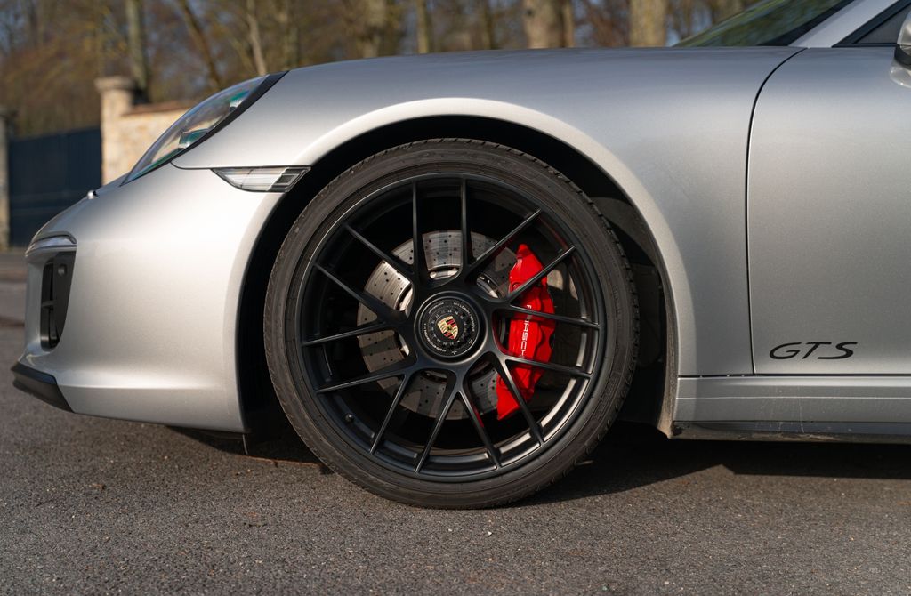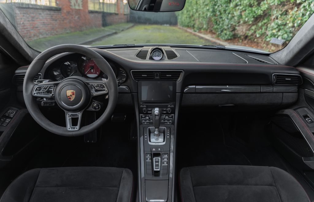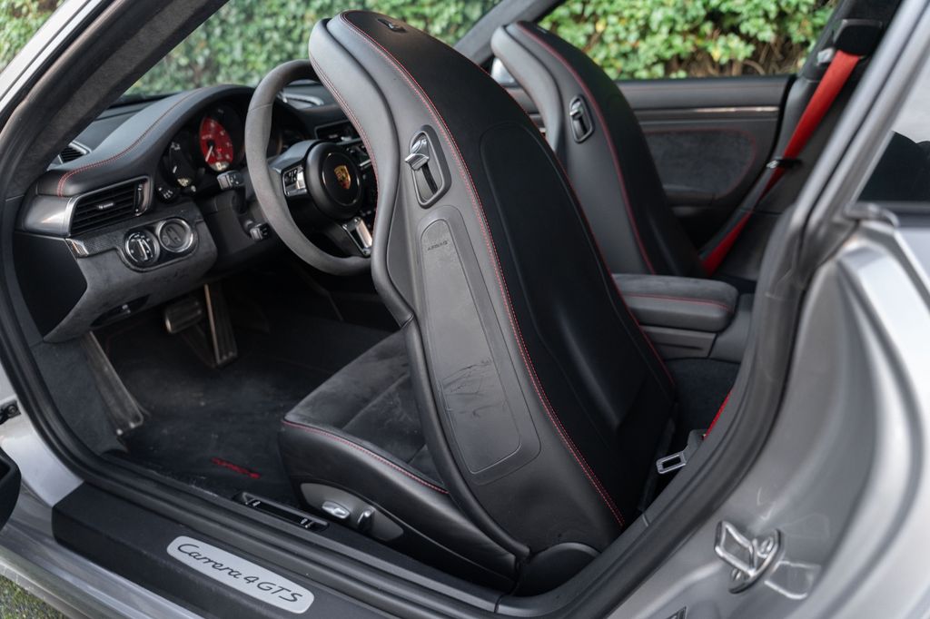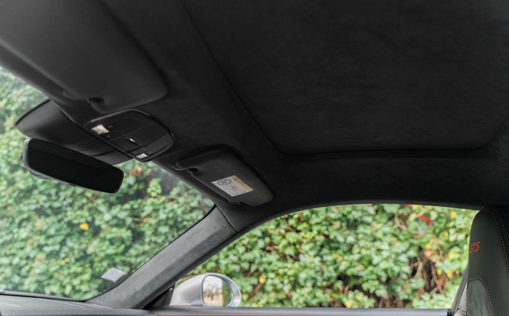 GTS interior package with contrasting stitching, contrasting seat belt edges, contrasting embroidered GTS logo on headrests, floor mats with black stitching and contrasting Porsche logo, contrasting rev counter, dashboard panels, door panels and centre console in carbon fibre