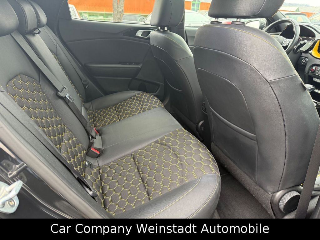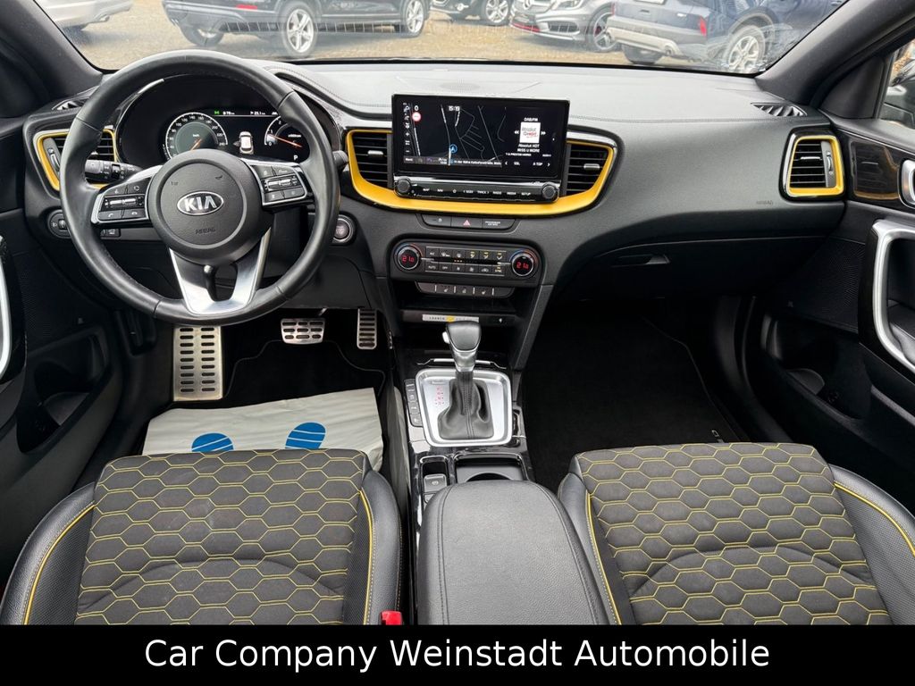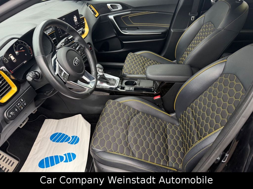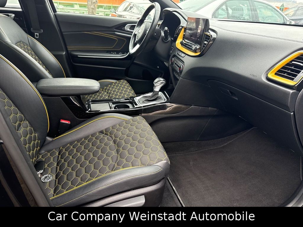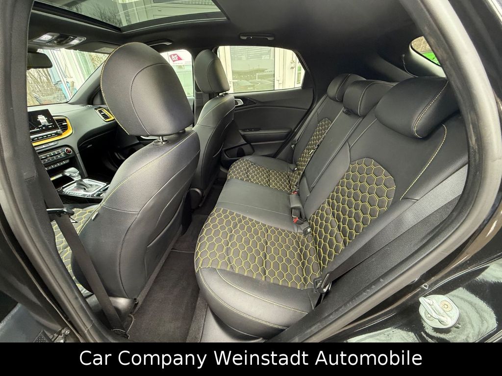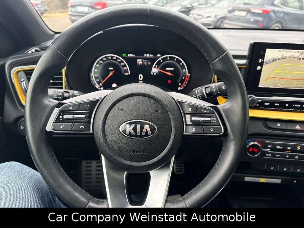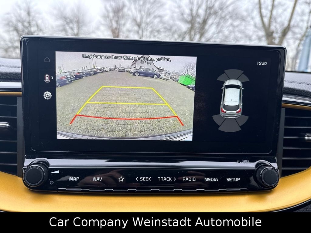 Adaptive Geschwindigkeits-Regelanlage mit Stop&Go-Funktion, Airbag Fahrer-/Beifahrerseite, Antriebs-Schlupfregelung (TCS), Audio-Navigationssystem KIA (10,25"), Außenspiegel elektr. anklappbar, Außenspiegel elektr. verstellbar, beide, Außenspiegel heizbar, Bi-LED-Scheinwerfer, Blinkleuchte in Außenspiegel integriert, Bordcomputer, Bremsassistent, Chromeinfassung Seitenfenster, DAB-Tuner (Radioempfang digital), Dachantenne im Haifischflossen-Design, Dachhimmel schwarz, Dachspoiler, Einparkhilfe hinten, Einschaltautomatik für Fahrlicht, Fahrassistenz-System: aktiver Spurhalteassistent (LKAS, Lane Keep Assist System), Fahrassistenz-System: Berganfahr-Assistent, Fahrassistenz-System: Fahrprofilauswahl (Drive Mode), Fahrassistenz-System: Fernlichtassistent, Fahrassistenz-System: Frontkollisionswarnung mit Fußgänger- und Fahrraderkennung und Abbiegefunktion, Fahrassistenz-System: Intelligentes Parksystem mit Einpark-Assistent (Parallel- und Quereinparken und Parallelausparken), Fahrassistenz-System: Müdigkeitserkennungs-Sensor (Driver Attention Warning, DAW), Fahrassistenz-System: Querverkehrs-Assistent (Rear Cross Traffic Collision Warning, RCCW), Fahrassistenz-System: Spurwechselassistent, Fahrassistenz-System: Stauassistent, Fahrassistenz-System: Verkehrszeichenerkennung, Fensterheber elektr. mit Einklemmschutz hinten, Fensterheber elektr. mit Einklemmschutz vorn, Fensterheber elektrisch vorn + hinten, Freisprecheinrichtung Bluetooth, Fußmatten, Gepäcknetz / Tasche an Vordersitzlehne, Gepäcksicherungsnetz, Getriebe 7-Gang - Doppelkupplungsgetriebe DCT, Getränkehalter, Heckklappenöffnung elektr., Heckleuchten LED, Heckscheibe heizbar, Induktionsladeschale für Smartphone, Innenspiegel mit Abblendautomatik, Isofix-Aufnahmen für Kindersitz, Karosserie: 5-türig, Klimaautomatik 2-Zonen, Kombiinstrument digital, Kopf-Airbag-System, Kopfstützen hinten verstellbar, Kopfstützen vorn verstellbar, Kühlergrill Klavierlack, Laderaumboden variabel, Lendenwirbelstütze Sitz vorn links und rechts, elektr. verstellbar, Lenkrad heizbar, Lenkrad mit Multifunktion, LM-Felgen, Luftausströmer im Fond mitte, Mittelarmlehne vorn verschiebbar, Mobile Online Dienste UVO Connect / Kia Connect, Motor 1,6 Ltr. - 150 kW TGDI KAT, Otto-Partikelfilter (OPF), Parkbremse elektrisch, Pedale Aluminium, Radstand 2650 mm, Reifen-Reparaturset, Reifendruck-Kontrollsystem, Rückfahrkamera, Rücksitz klappbar (40:20:40), Schadstoffarm nach Abgasnorm Euro 6d-TEMP, Schalt-/Wählhebelgriff Leder, Scheibenwaschdüsen heizbar, Seitenairbag, Sitz vorn links elektr. verstellbar (mit Memory), Sitz vorn links höhenverstellbar, Sitz vorn rechts mech. höhenverstellbar, Sitzbezug / Polsterung: Stoff/Leder, Sitzheizung vorn, Smartphone Schnittstelle (Apple CarPlay & Android Auto), Sonnenblenden mit Spiegel (beleuchtet), Sound-System JBL Premium, Start/Stop-Anlage (ISG), Steckdose (12V-Anschluß) im Koffer-/Laderaum, Steckdose (12V-Anschluß) in Mittelkonsole, Stoßfänger Wagenfarbe, Tagfahrlicht LED hinten, Türgriffe außen Wagenfarbe, Türgriffe innen Chrom-Optik, USB-Anschluss + AUX-IN-Anschluss, USB-Schnellladeanschluß Mittelkonsole, Verglasung hinten abgedunkelt (Privacy Glass), Warnanlage für Sicherheitsgurte hinten, Warnanlage für Sicherheitsgurte, Fahrer-/Beifahrerseite, Wärmeschutzverglasung