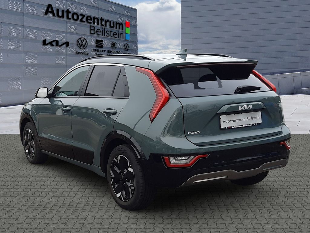 3. Bremsleuchte, 6 Lautsprecher, Airbag Beifahrerseite abschaltbar, Airbag Fahrer-/Beifahrerseite, Ambiente-Beleuchtung, Audio-Navigationssystem KIA (10,25"), Audiobedienung am Lenkrad, Außenspiegel elektr. anklappbar, Außenspiegel elektr. verstell- und heizbar, beide, Außenspiegel Wagenfarbe, Blinkleuchten LED in Außenspiegel integriert, Bordcomputer, Dachreling, Einparkhilfe vorn und hinten, Einschaltautomatik für Fahrlicht, Elektromotor 150 kW (cont. 50 kW), Fahrassistenz-System: aktiver Spurhalteassistent (LKAS, Lane Keep Assist System), Fahrassistenz-System: Autobahnassistent (Highway Driving Assist, HDA), Fahrassistenz-System: Autonome Notbremsfunktion inkl. Abbiegefunktion (FCA-JT), Fahrassistenz-System: Berganfahr-Assistent, Fahrassistenz-System: Fahrprofilauswahl (Drive Mode), Fahrassistenz-System: Fernlichtassistent, Fahrassistenz-System: Frontkollisionswarnung mit Fußgänger- und Fahrraderkennung und Abbiegefunktion, Fahrassistenz-System: Insassenalarm (Rear Occopant Alert, ROA), Fahrassistenz-System: Müdigkeitserkennungs-Sensor (Driver Attention Warning, DAW), Fahrassistenz-System: Querverkehrs-Assistent (Rear Cross Traffic Alert, RCTA), Fahrassistenz-System: Sicherheitssystem mit automatischem Notruf (ERA GLONASS / eCall), Fahrassistenz-System: Spurfolgeassistent (Lane Following Assist, LFA), Fahrassistenz-System: Totwinkel-Assistent (BLIS), Fahrassistenz-System: Verkehrszeichenerkennung, erweitert (Geschwindigkeits-Regel-/Begrenzeranlage), Fensterheber elektrisch vorn + hinten, Freisprecheinrichtung (Bluetooth) mit Sprachsteuerung, Frontscheibe Akustikglas, Fußmatten, Gepäckraumabdeckung / Rollo, Getriebe für Elektrofahrzeug, HV-Batterie 64 kWh, Innenspiegel mit Abblendautomatik, Isofix-Aufnahmen für Kindersitz, Karosserie: 5-türig, Klimaautomatik 2-Zonen, Knieairbag Fahrerseite, Kombiinstrument digital mit Panorama-Display, Kopfstützen hinten verstellbar, Kopfstützen vorn verstellbar, Ladevorrichtung On-Board-Lader (3-Phasen), Lenkrad heizbar, Lenkrad mit Multifunktion, Lenksäule (Lenkrad) höhenverstellbar, LM-Felgen, Luftausströmer im Fond mitte, Mobile Online Dienste UVO Connect / Kia Connect, Navigationsbasierte Adaptive Geschwindigkeitsregelanlage (Tempomat) mit Abstandsregelung (NSCC), Nebelscheinwerfer LED, Nebelschlussleuchte LED, Parkbremse elektrisch, Radioempfang digital (DAB+), Radstand 2720 mm, Reifen-Reparaturset, Reifendruck-Kontrollsystem, Rückfahrkamera, Seitenairbag, Sitzbezug / Polsterung: Stoff/Kunstleder, Sitze vorn höhenverstellbar, Sitzheizung vorn, Smartphone Schnittstelle (Apple CarPlay & Android Auto), USB-Anschluss Mittelkonsole, Vehicle-to-Device Stecker (V2D), Warnanlage für Sicherheitsgurte hinten, Warnanlage für Sicherheitsgurte, Fahrer-/Beifahrerseite, Wärmepumpe für Heizungs-/Klimaanlage, Wärmeschutzverglasung